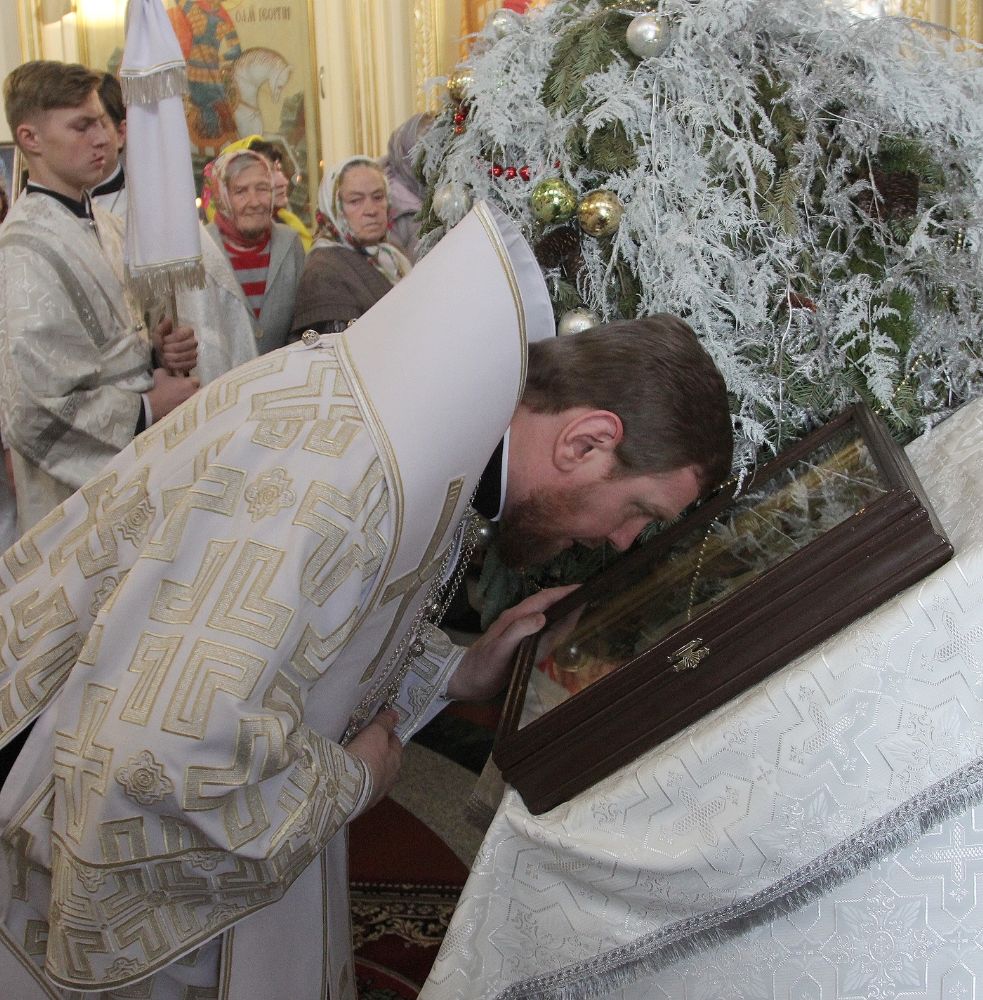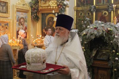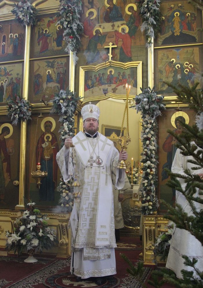 Проповедь на запричастном стихе произнес игумен Алексий (Несмеев) — благочинный собора призвал молящихся не уподобляться царю Ироду, по чьему приказу, как гласит Святое Писание, погибли 14 тысяч младенцев, ставших первыми мучениками за Христа, не прикипать всей душой к богатствам земной жизни, не делать из власти и богатства идолов: «Для христианина смыслом жизни является Христос, к Которому и следует направлять нам все свои помыслы, чтобы сподобиться обожения: Христос стал человеком, дабы мы, люди, соделались богами по благодати... Вот в чем смысл Рождества Христова».