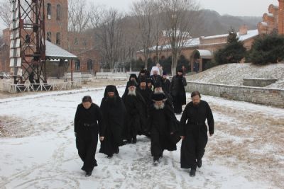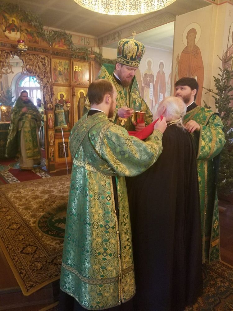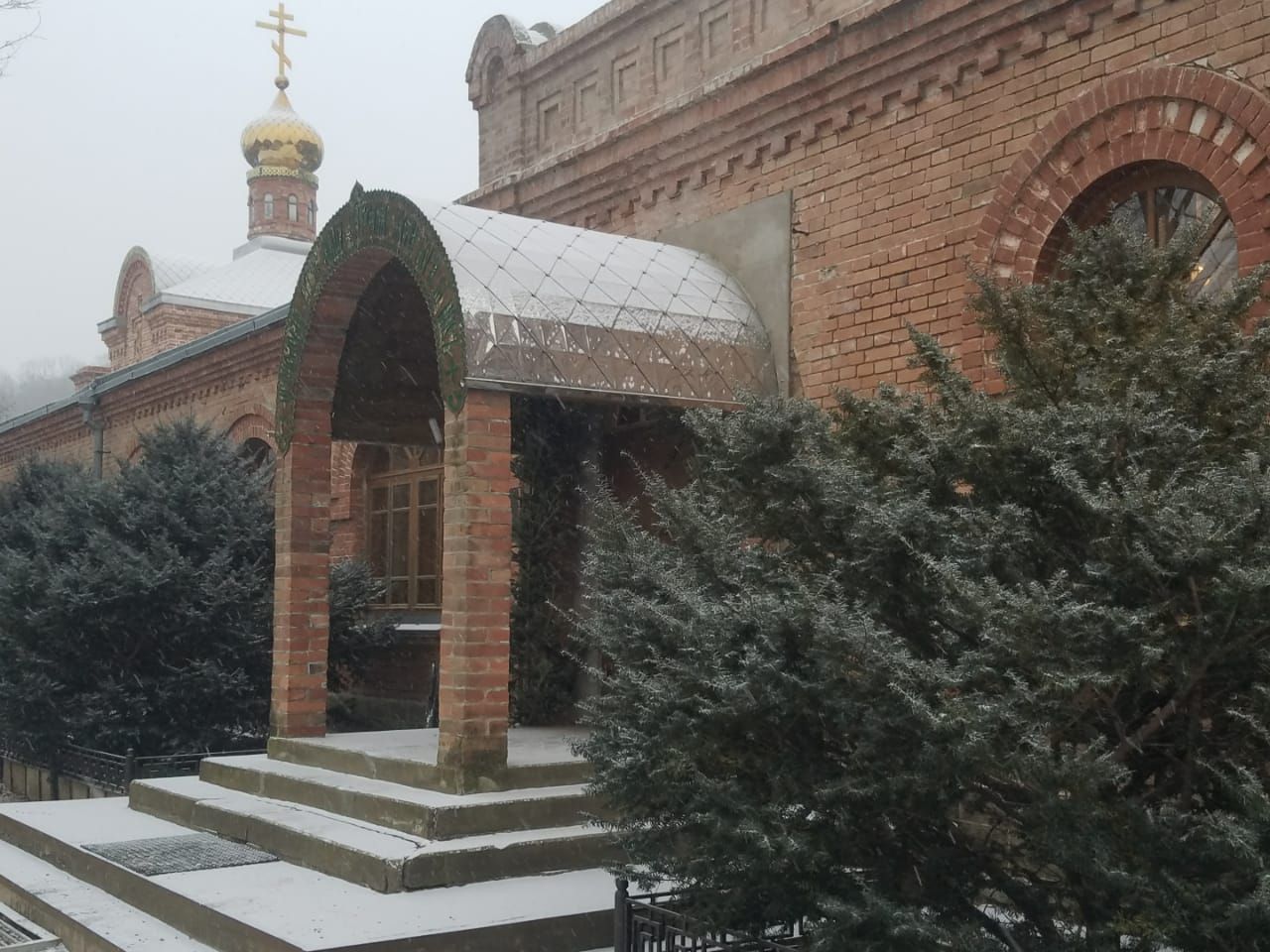 Несмотря на непогоду, монастырский престольный праздник посетили паломники из храмов Владивостока. Проповедь на запричастном стихе произнес игумен Климент.