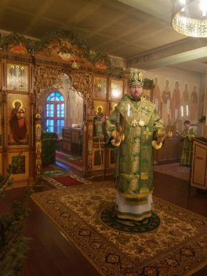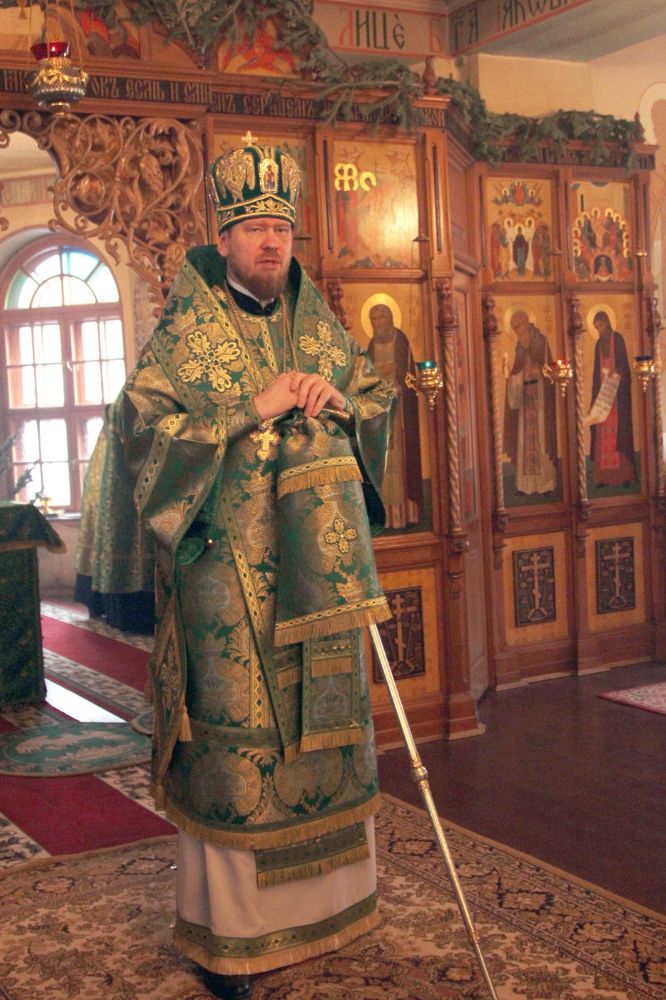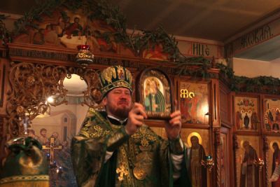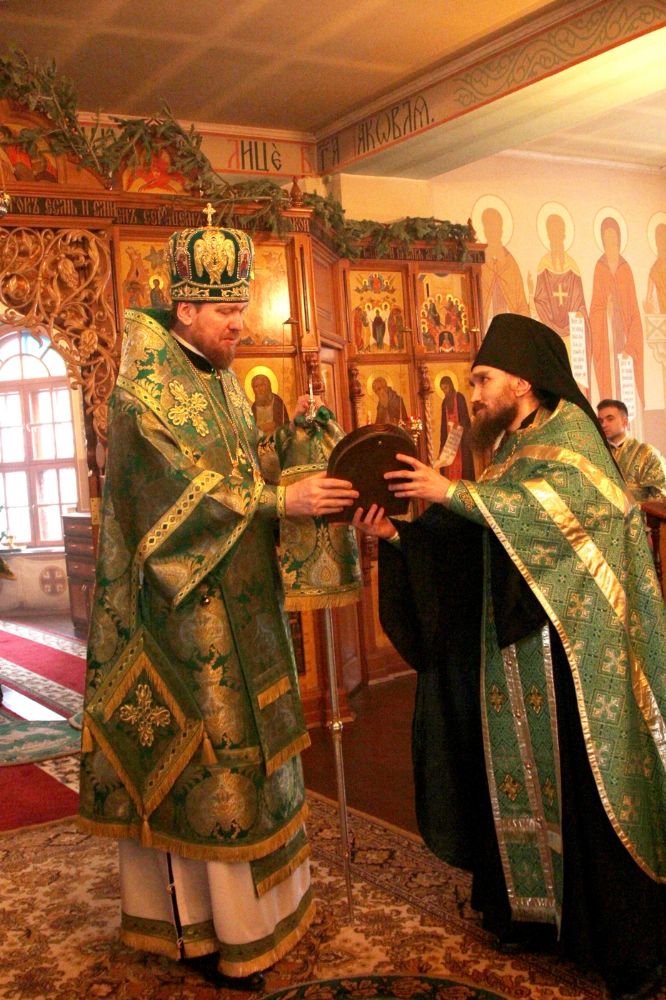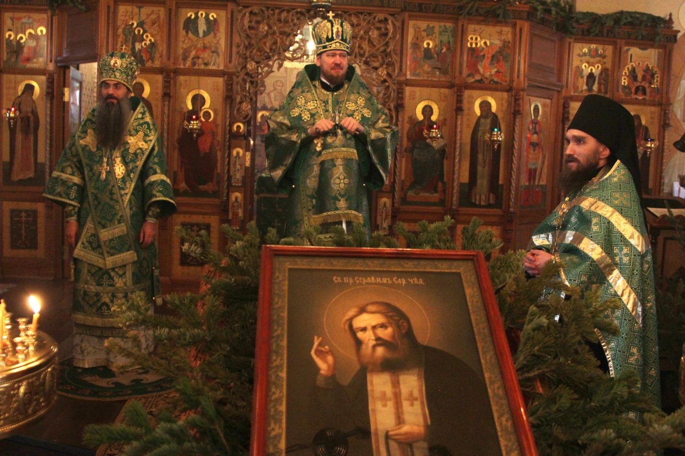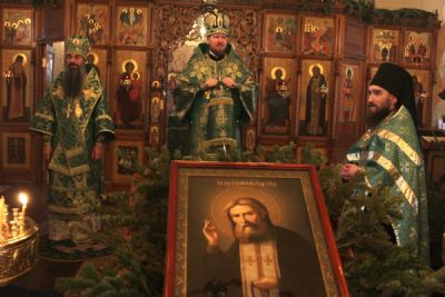 В знак первого совместного богослужения престольного праздника настоятель монастыря преподнес новому архипастырю икону св. Серафима Саровского, которой владыка Владимир благословил молящихся.