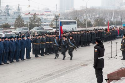 В начале торжественного мероприятия по традиции города Боевой славы — Владивостока был дан полуденный выстрел. С приветственной речью выступил Герой Российской Федерации, генерал-майор юстиции Сергей Петров, а также губернатор Приморского края Олег Кожемяко. Руководитель региона подчеркнул, что годовщина Победы – это светлая памятная дата, символизирующая единство народа.