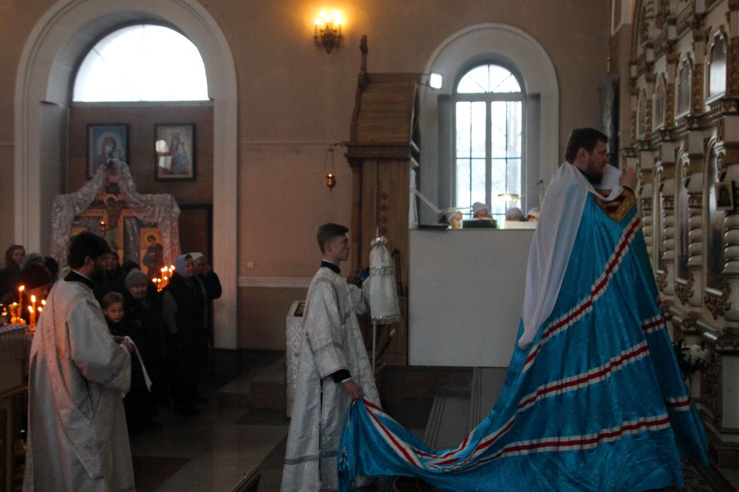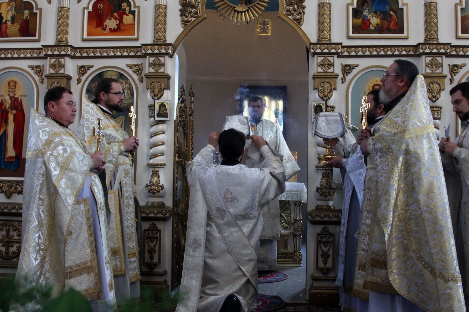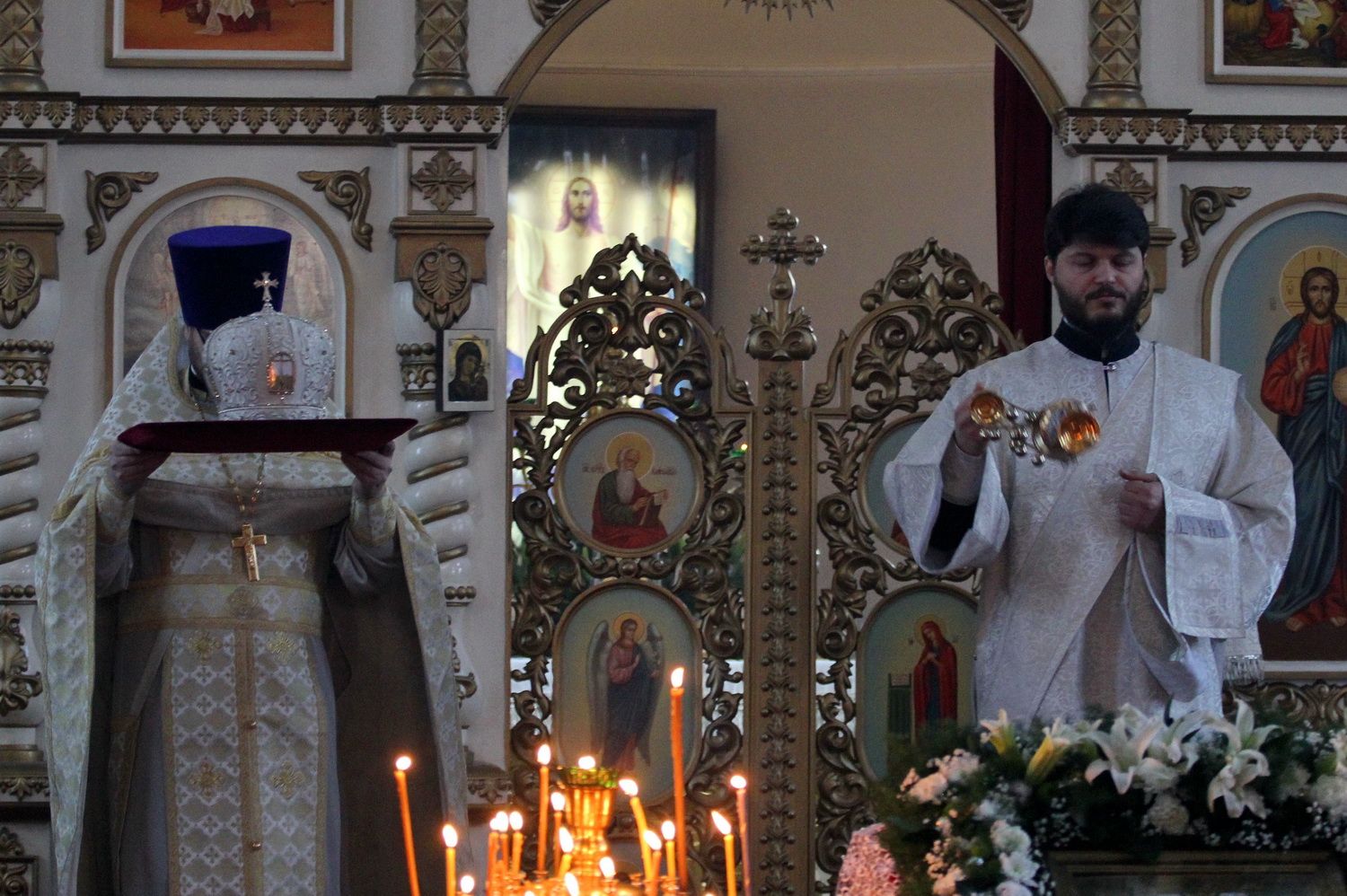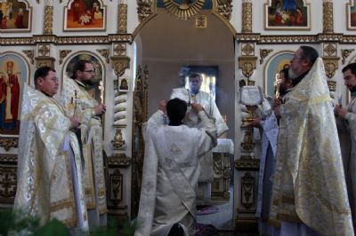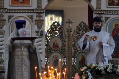 Его Высокопреосвященству сослужили благочинный I округа Владивостокской епархии протоиерей Димитрий Федорин; благочинный III округа протоиерей Евгений Маляр; настоятельБогоявленского храма протоиерей Георгий Зуев и духовенство епархии
