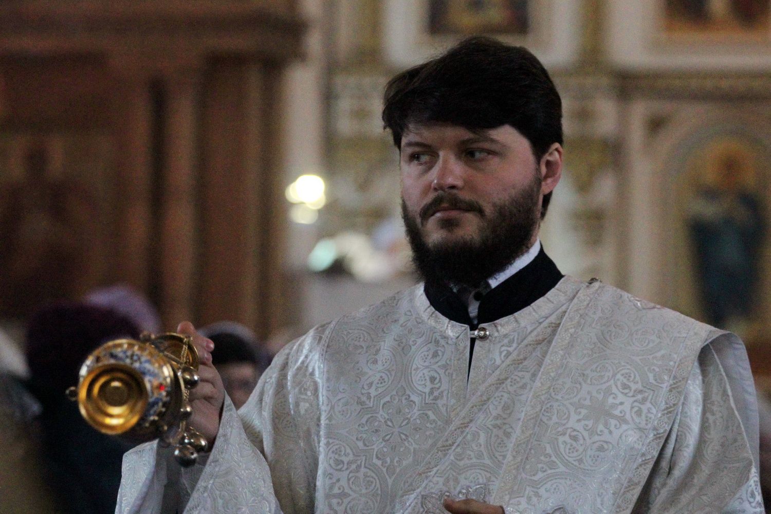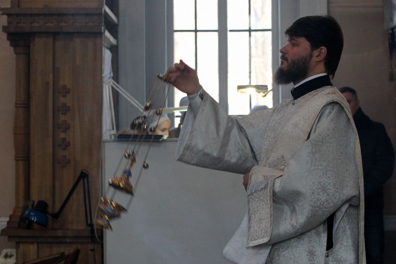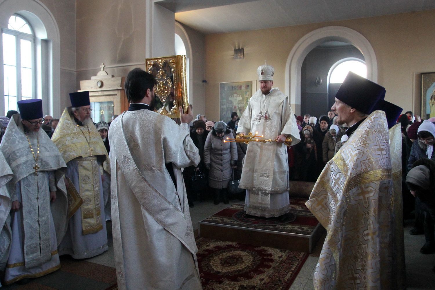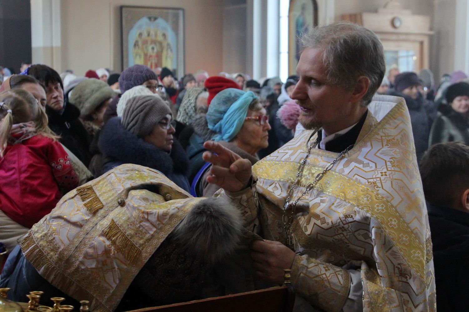 Его Высокопреосвященству сослужили благочинный I округа Владивостокской епархии протоиерей Димитрий Федорин; благочинный III округа протоиерей Евгений Маляр; настоятельБогоявленского храма протоиерей Георгий Зуев и духовенство епархии