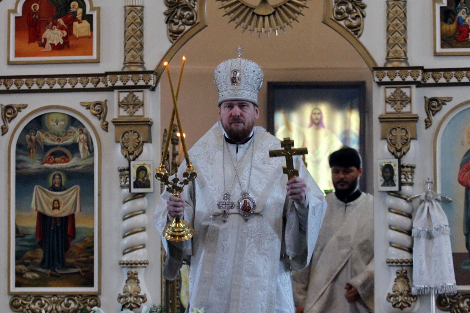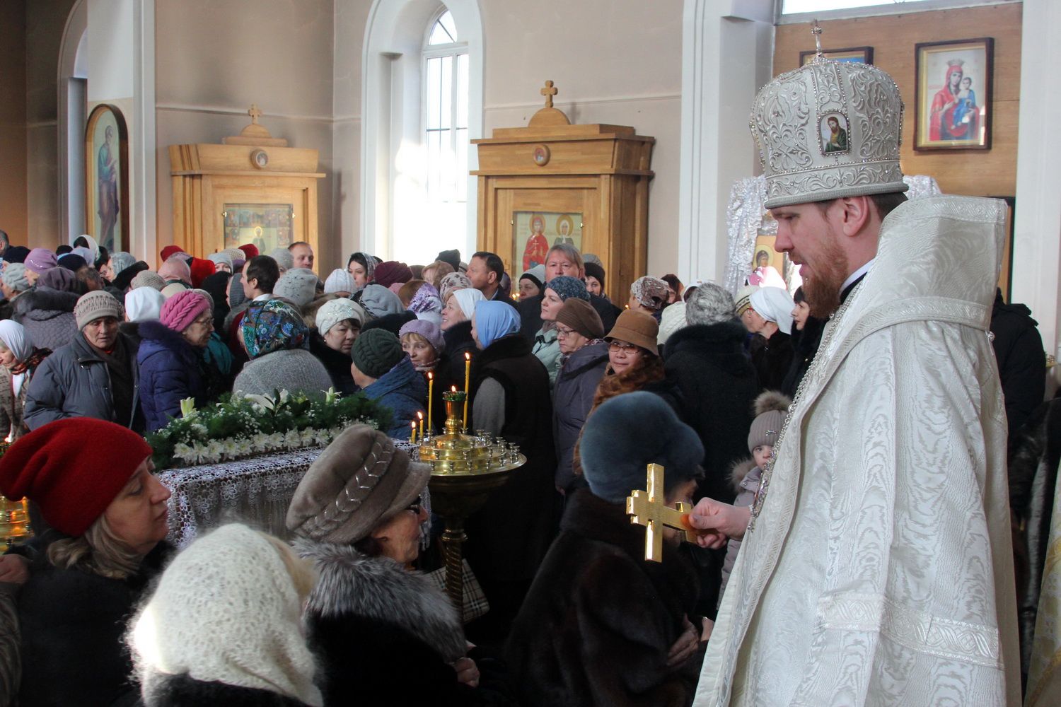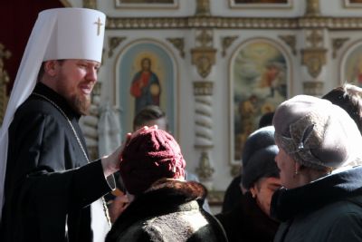 По окончании богослужения владыка Владимир обратился к верующим с архипастырским словом, в котором отметил, что в день Крещения Господня, люди лицезрели все три ипостаси Святой Троицы: голос - Бога Отца, Иисуса Христа - Сына Божьего и Святого Духа в виде голубя.