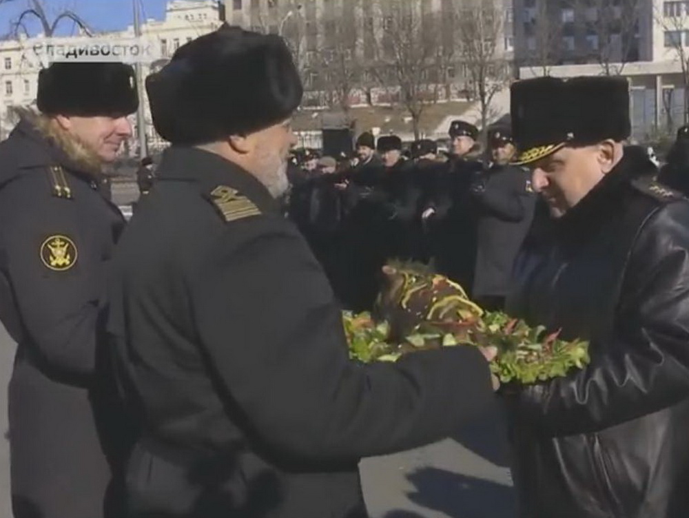 Во Владивостоке отряд кораблей встречал командующий Тихоокеанским флотом Сергей Авакянц. На церемонию встречи был приглашён настоятель храма святого апостола Андрея Первозванного при штабе ТОФ протоиерей Олег Дикмаров. На плацу основного причала Тихоокеанского флота состоялось построение личного состава дивизии надводных кораблей и митинг. Церемония встречи отряда кораблей из дальнего похода завершилась общим прохождением личного состава соединения.