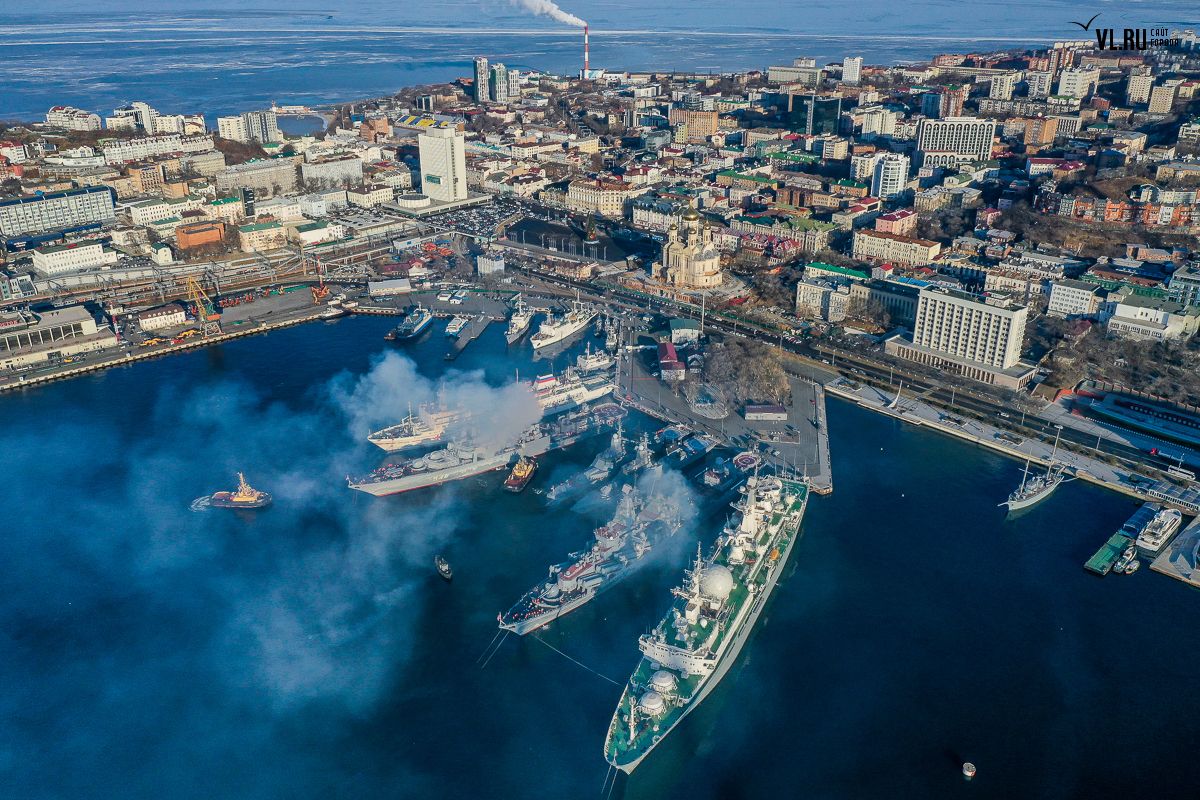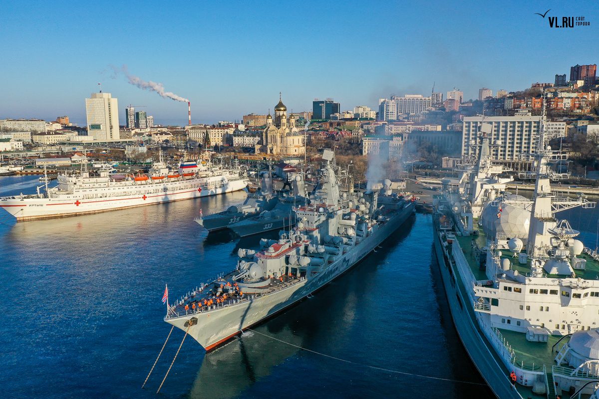 Владивосток. 24 января 2019г. состоялась торжественная церемония встречи отряда боевых кораблей Тихоокеанского флота ВМФ России по случаю возвращения из дальнего похода - сообщили в Минобороны РФ.