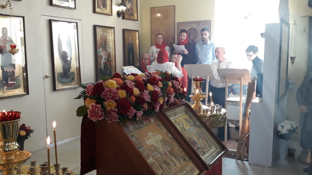 Богослужебные песнопения исполнил хор храма новомучеников и исповедников Церкви Русской (регент Лидия Головащенко).
