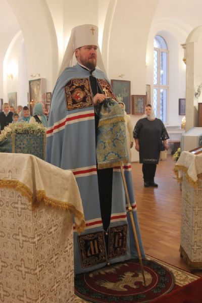 Протоиерей Евгений Маляр поздравил митрополита от всего благочиния отметил, что этот праздник и для владыки носит знаменательный характер (священническая хиротония). Он также отметил, что в благочинии три старинных храма: в Угловом - Покровский, в Алексеевке – святителя Тихона Калужского и храм в Казанском монастыре.