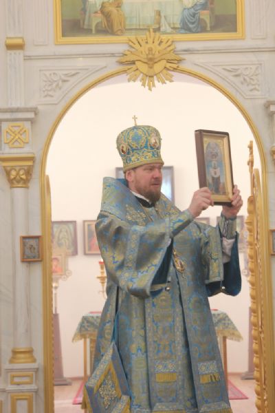 От прихода и прихожан настоятель храма протоиерей Сергий подарил владыке икону Божией Матери "Порт-Артурская". Митрополит Владимир благословил прихожан и клир этим святым образом.