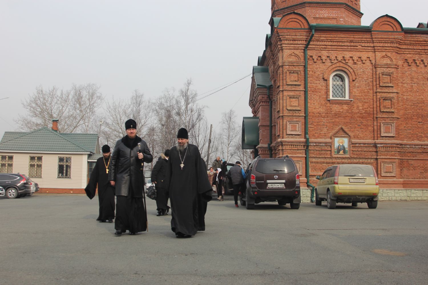 Угловое. 15 февраля 2019 года, в праздник Сретения Господа Бога и Спаса нашего Иисуса Христа, митрополит Владивостокский и Приморский Владимир возглавил Божественную литургию в храме Покрова Божией Матери.