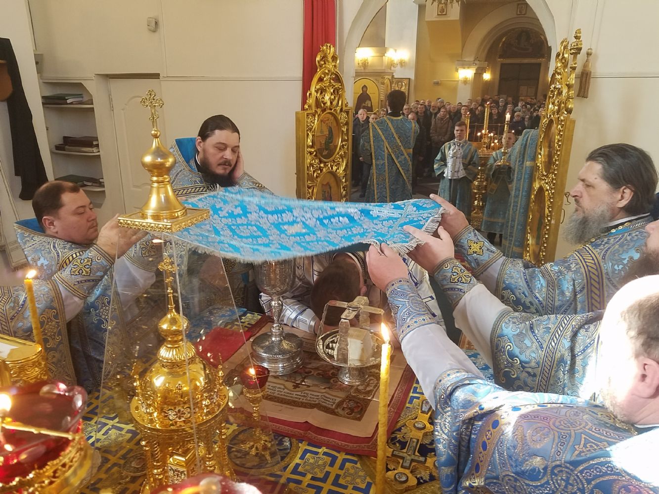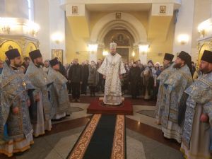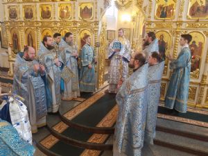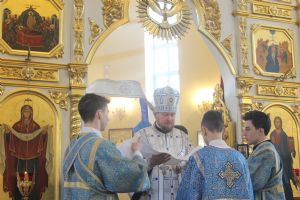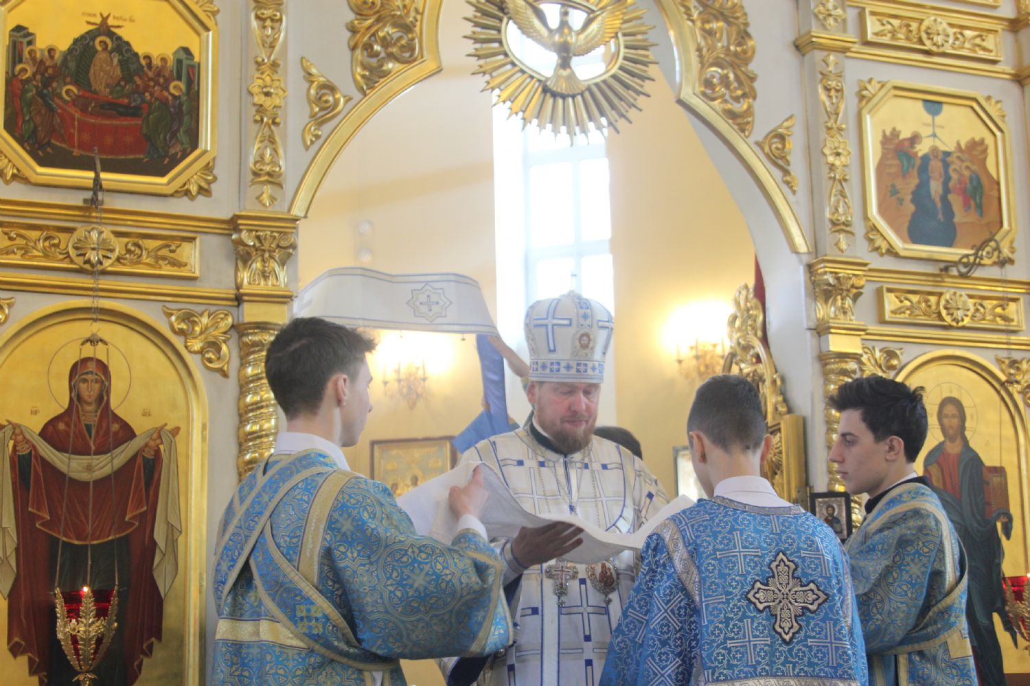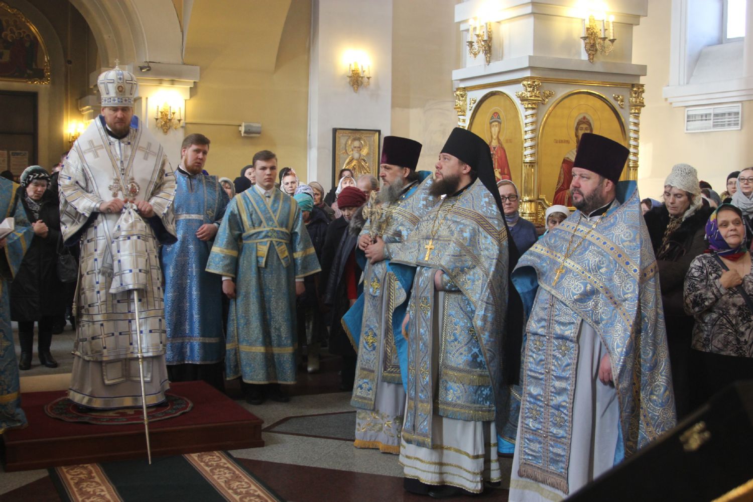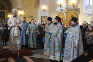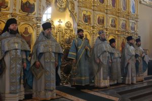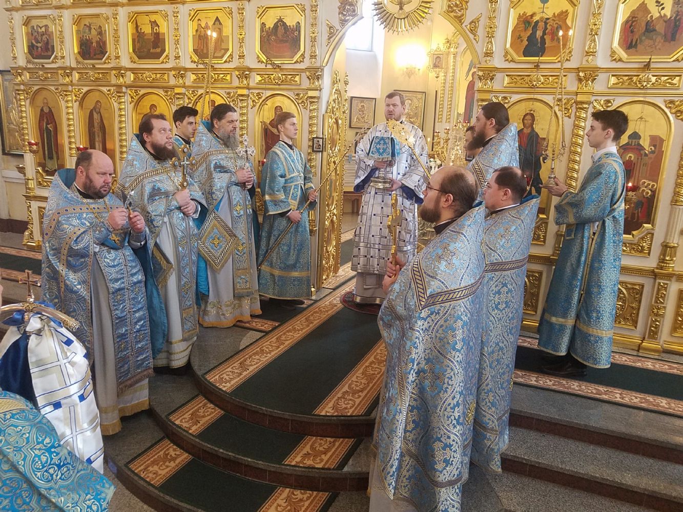 Его Высокопреосвященству сослужили: ключарь собора протоиерей Александр Талько, протоиерей Константин Чунчук, протоиерей Сергий Шуталев, иеромонах Иоанн (Костин), иерей Максим Точуков, иерей Димитрий Брызгалов, иерей Владимир Брагин. Богослужебные песнопения исполнил Митрополичий хор Покровского кафедрального собора под управлением регента Людмилы Макаренко.