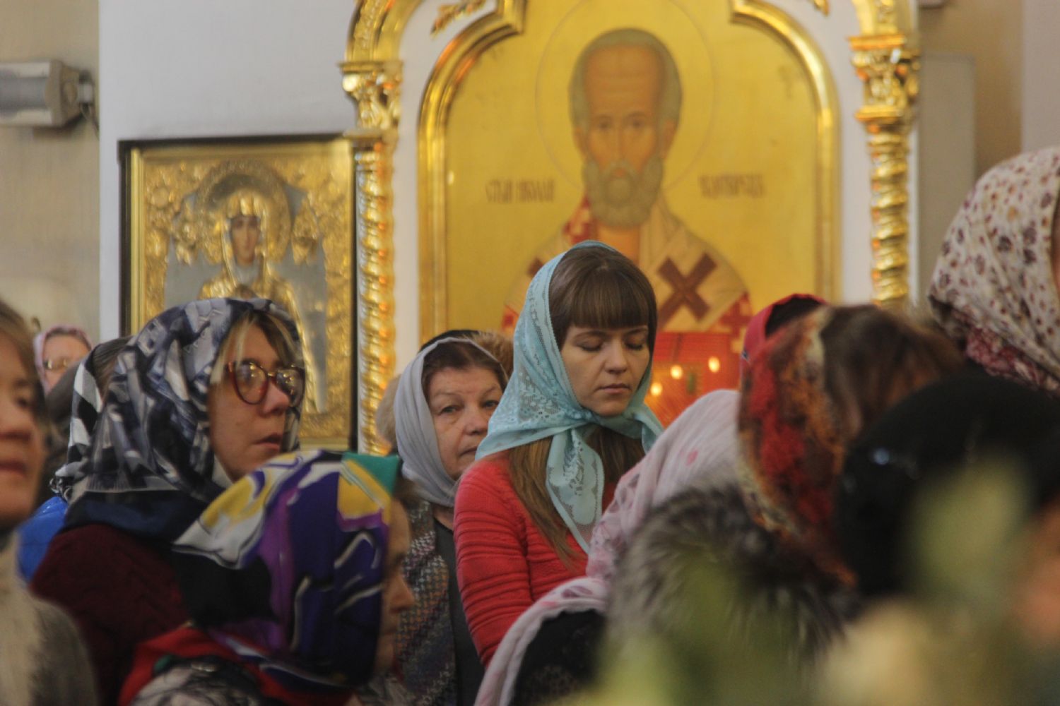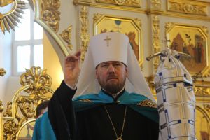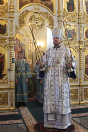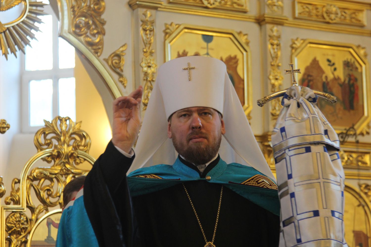 В завершении богослужения митрополит Владимир отметил важность молитвы в деле строительства Спасо-Преображенского кафедрального собора, поздравил прихожан с праздником и преподал архипастырское благословение.