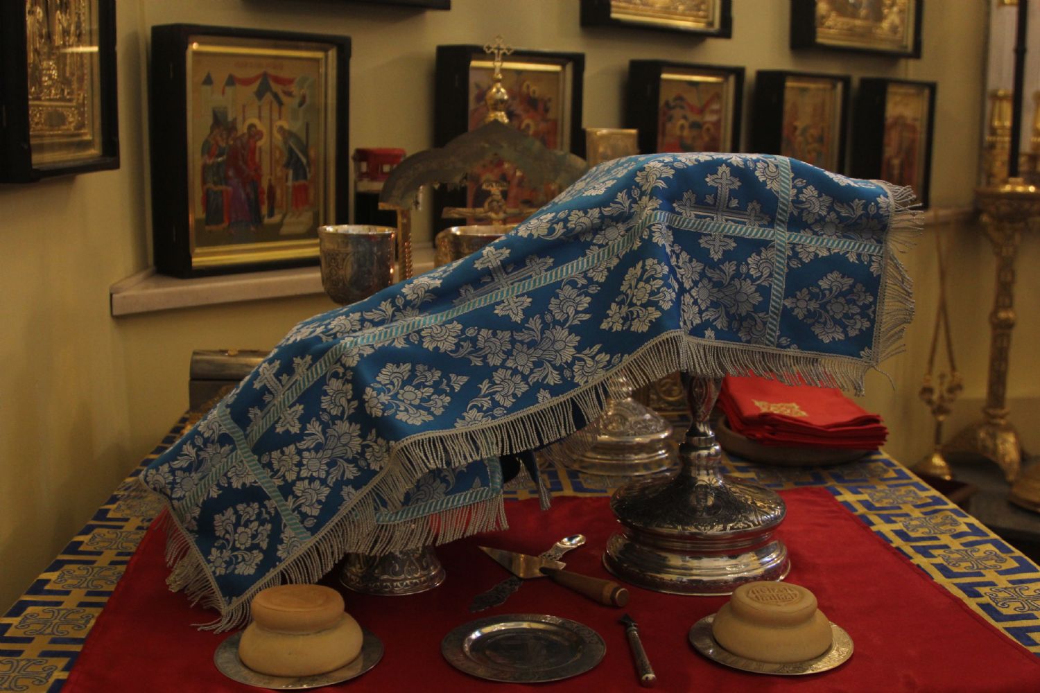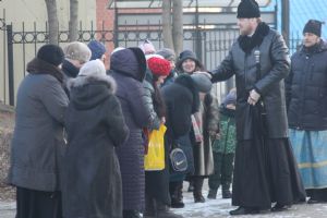 Во время целования Креста прихожанам были розданы тексты молитв о строительстве кафедрального собора с новой редакцией.