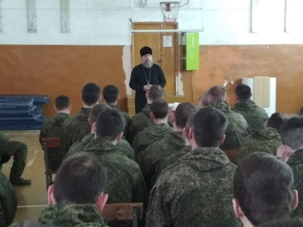 Владивосток. 19 февраля 2019 года протоиерей Александр Талько, ключарь Покровского кафедрального собора, встретился с воинами одной из воинских частей Владивостока. На встрече присутствовало более 100 человек личного состава части. Отец Александр говорил с молодыми воинами на духовно-нравственные темы. Живой интерес вызвал вопрос о смысле человеческой жизни в контексте православной веры и самопожертвования, как наивысшей степени уподобления Богу – Любви. Отмечая важность боевой и физической подготовки в военном деле, батюшка обратил внимание на необходимость духовной защиты, которая приобретается в Таинстве Крещения: молитва, пост, таинства Покаяния и Причастия, ношение нательного креста и пр. После общей беседы желающие смогли лично задать вопросы священнику. Крещенным в православии были вручены нательные кресты. Библиотека части пополнилась листовками духовно нравственного содержания и номерами журнала "Фома". Командование части выразило надежду на продолжение подобных встреч.