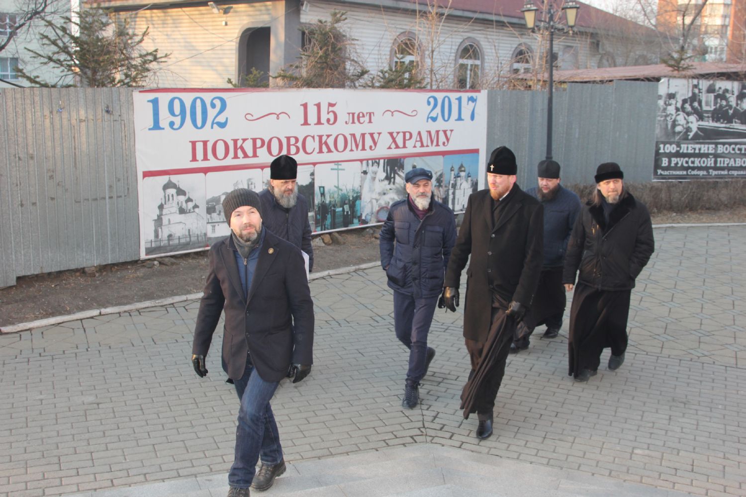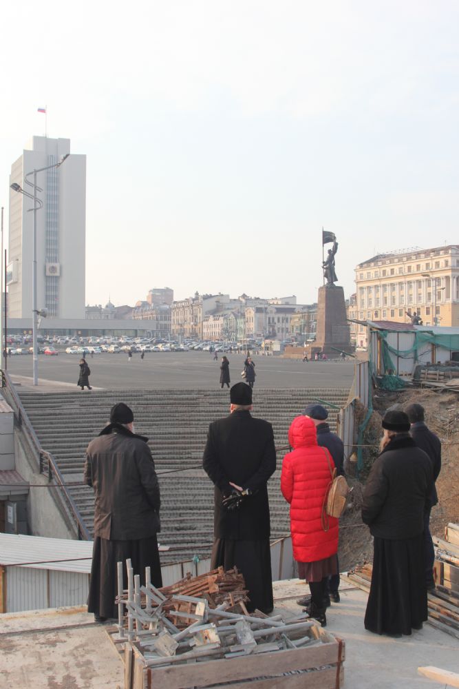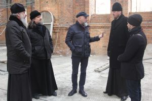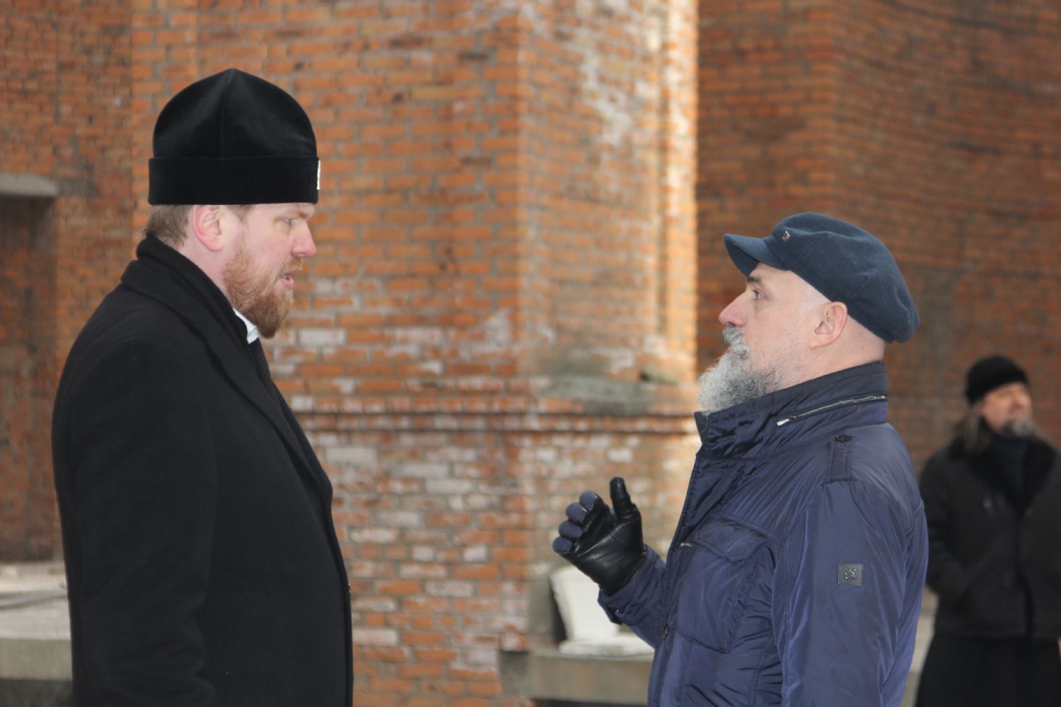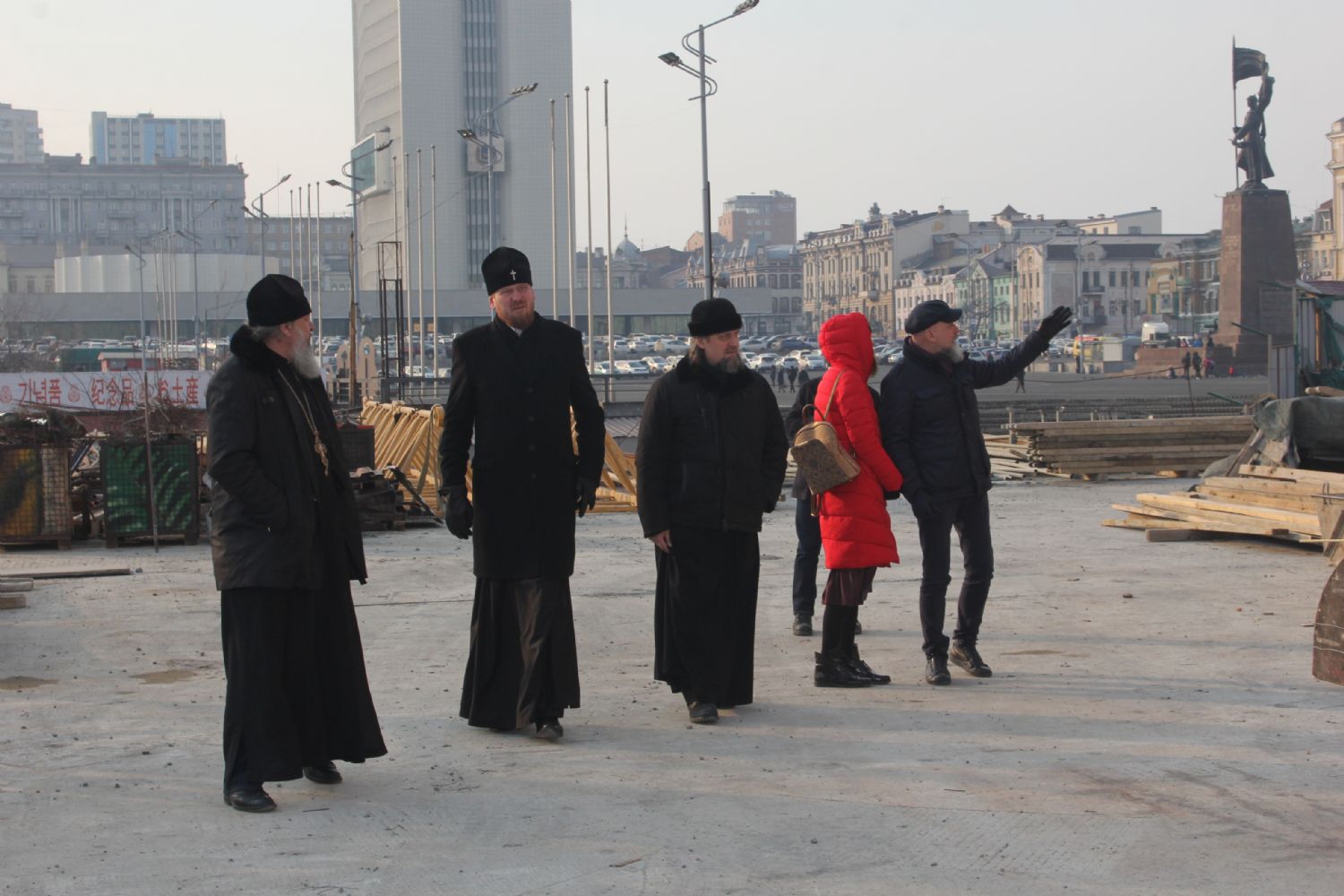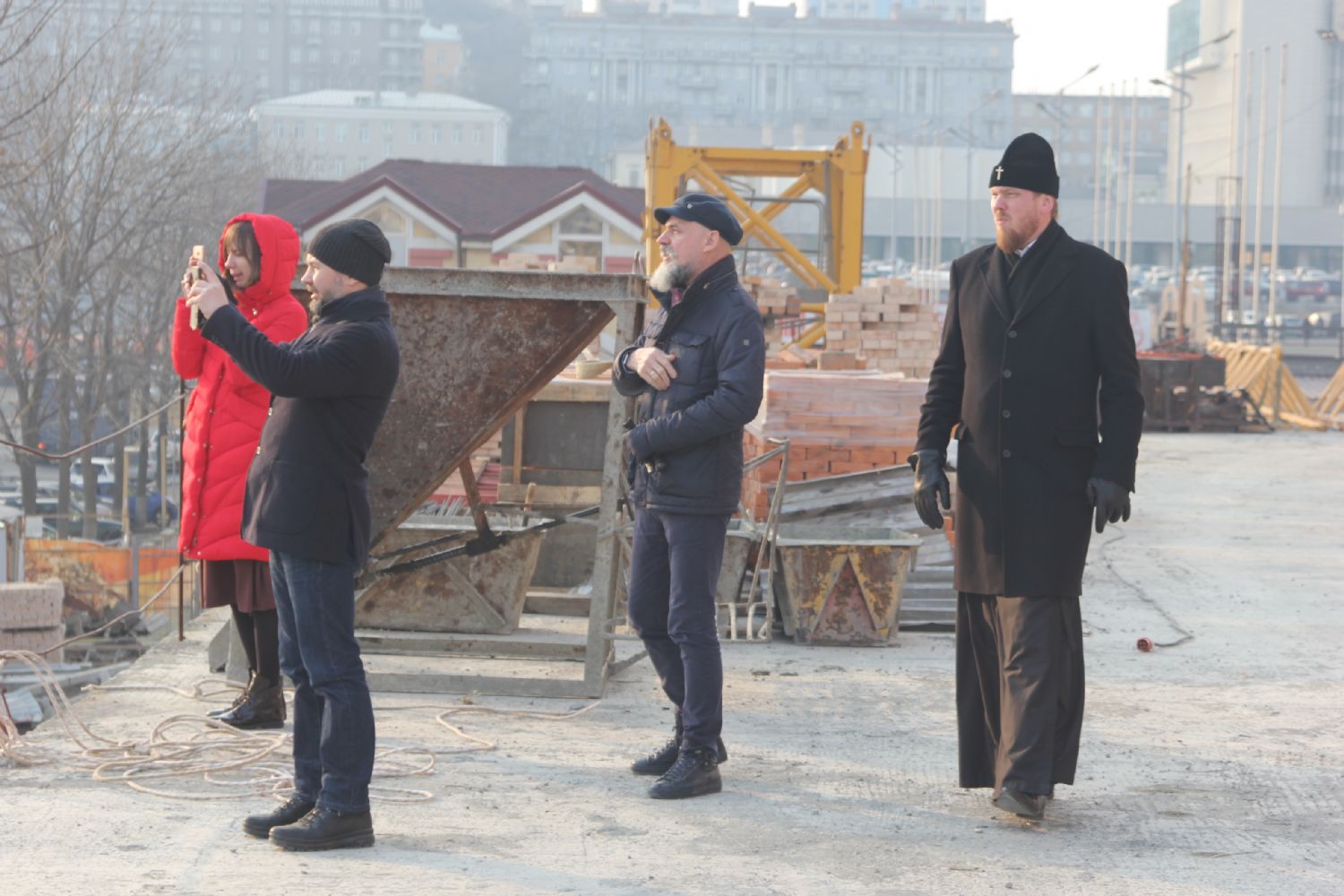 Владивосток. 20 февраля 2019 года митрополит Владивостокский и Приморский Владимир на строительной площадке Спасо-Преображенского кафедрального собора встретился с известным архитектором, руководителем творческого объединения «Товарищество реставраторов. Мастерские Андрея Анисимова» Андреем Альбертовичем Анисимовым и группой архитекторов и художников, занимающихся благоукрашением храмов по всей России.