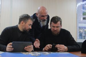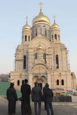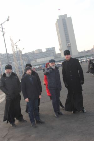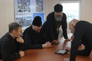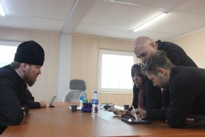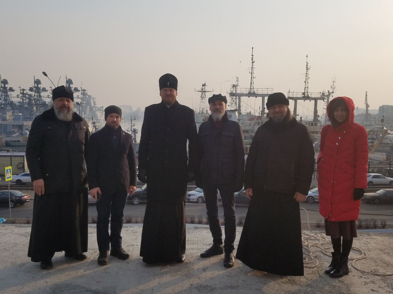 В рабочей встрече приняли участие секретарь Владивостокской епархии, ответственный за строительство Спасо-Преображенского кафедрального собора протоиерей Игорь Талько и настоятель Казанского храма Владивостока, руководитель епархиального отдела религиозного образования и катехизации протоиерей Ростислав Мороз.