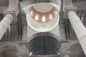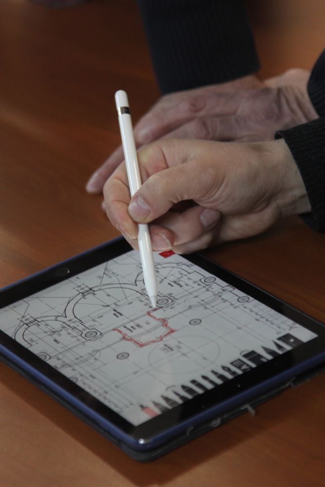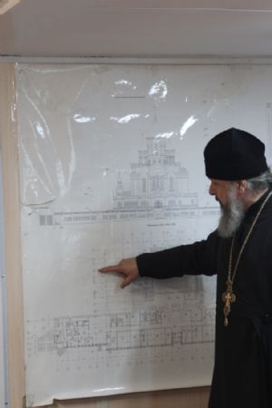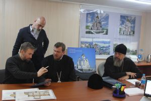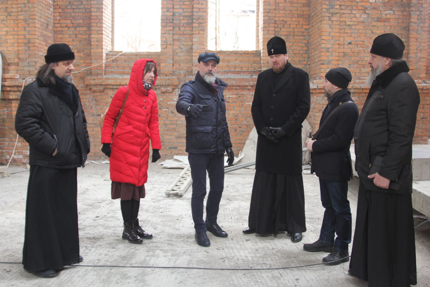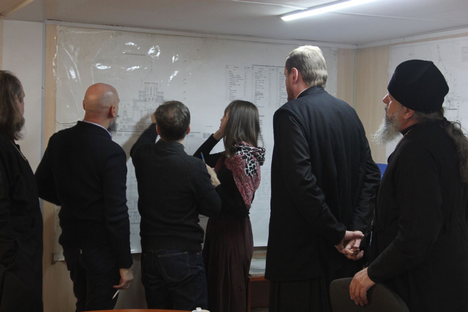 Митрополит Владимир обсудил с гостями варианты внутренней отделки и росписи Спасо-Преображенского кафедрального собора, технику исполнения икон для иконостаса и утвари для алтаря.
