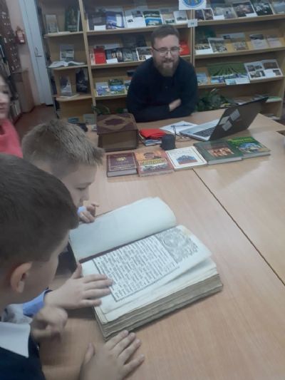 В ходе беседы дети смогли прикоснуться к свидетелям истории — книгам XVI века, что вызвало у них неподдельный интерес.