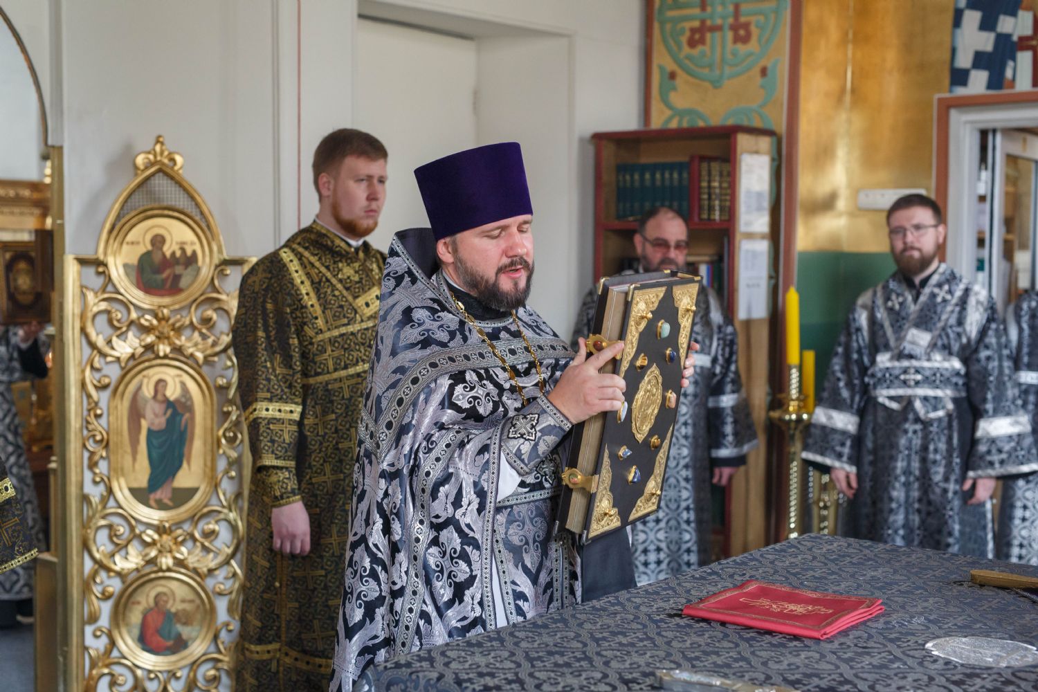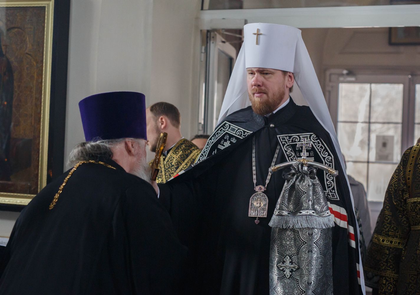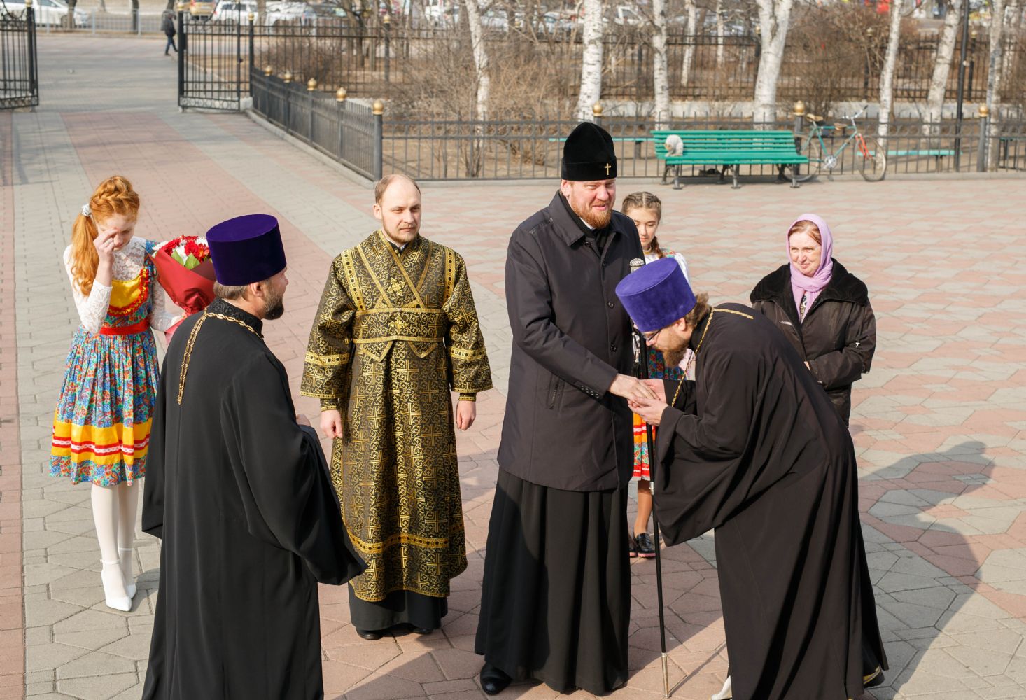 Его Высокопреосвященству сослужили благочинный II округа Владивостокской епархии протоиерей Сергий Якутов, благочинный I округа протоиерей Дмитрий Федорин, настоятель храма преподобного Серафима Саровского города Уссурийска протоиерей Григорий Цуркан, священнослужители Покровского храма города Уссурийска.