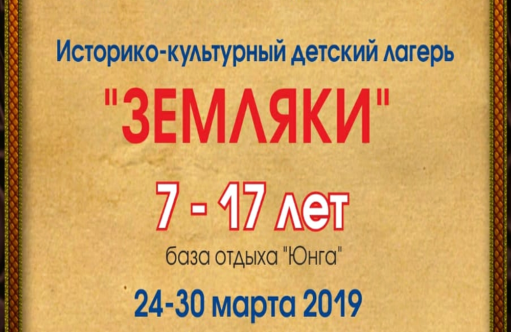 Владивосток. Молодежный отдел епархии готовится к открытию историко-культурного детского лагеря «Земляки». Очередная смена пройдет с 24 по 30 марта 2019 года на базе отдыха «Юнга» в пригороде Владивостока. Смена будет посвящена Великой Победе.