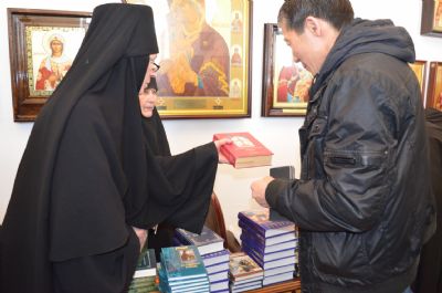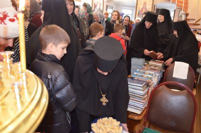 В ходе акции в монастырском храме было роздано порядка двухсот духовных книг — их раздавали по окончании богослужения вместе с просфорами.