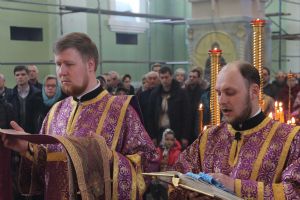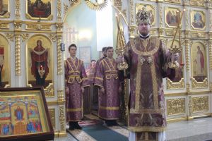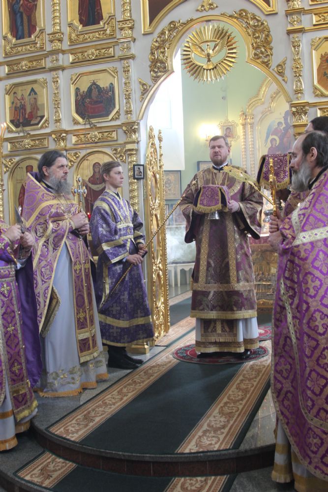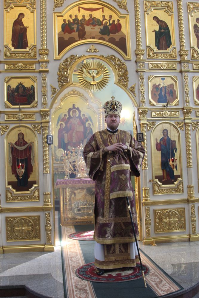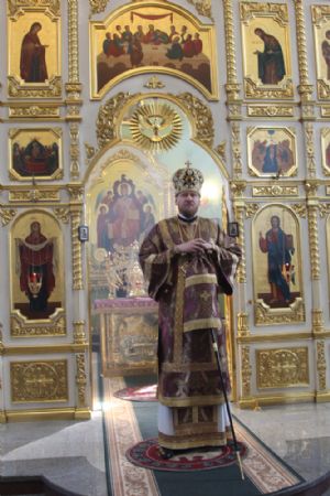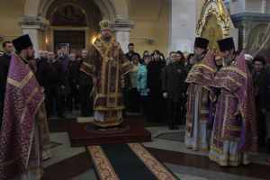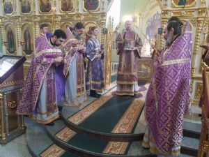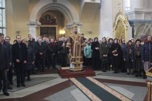 Его Высокопреосвященству сослужили: ключарь собора протоиерей Александр Талько, протоиерей Константин Чунчук, игумен Антоний (Каменчук), иерей Владимир Брагин, иерей Игорь Шевчук.