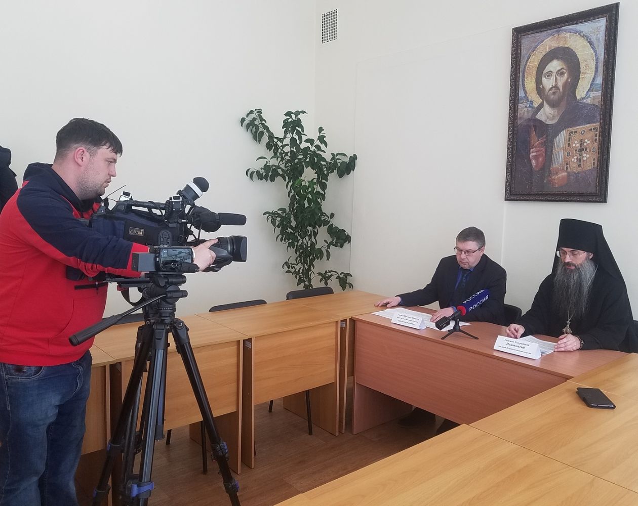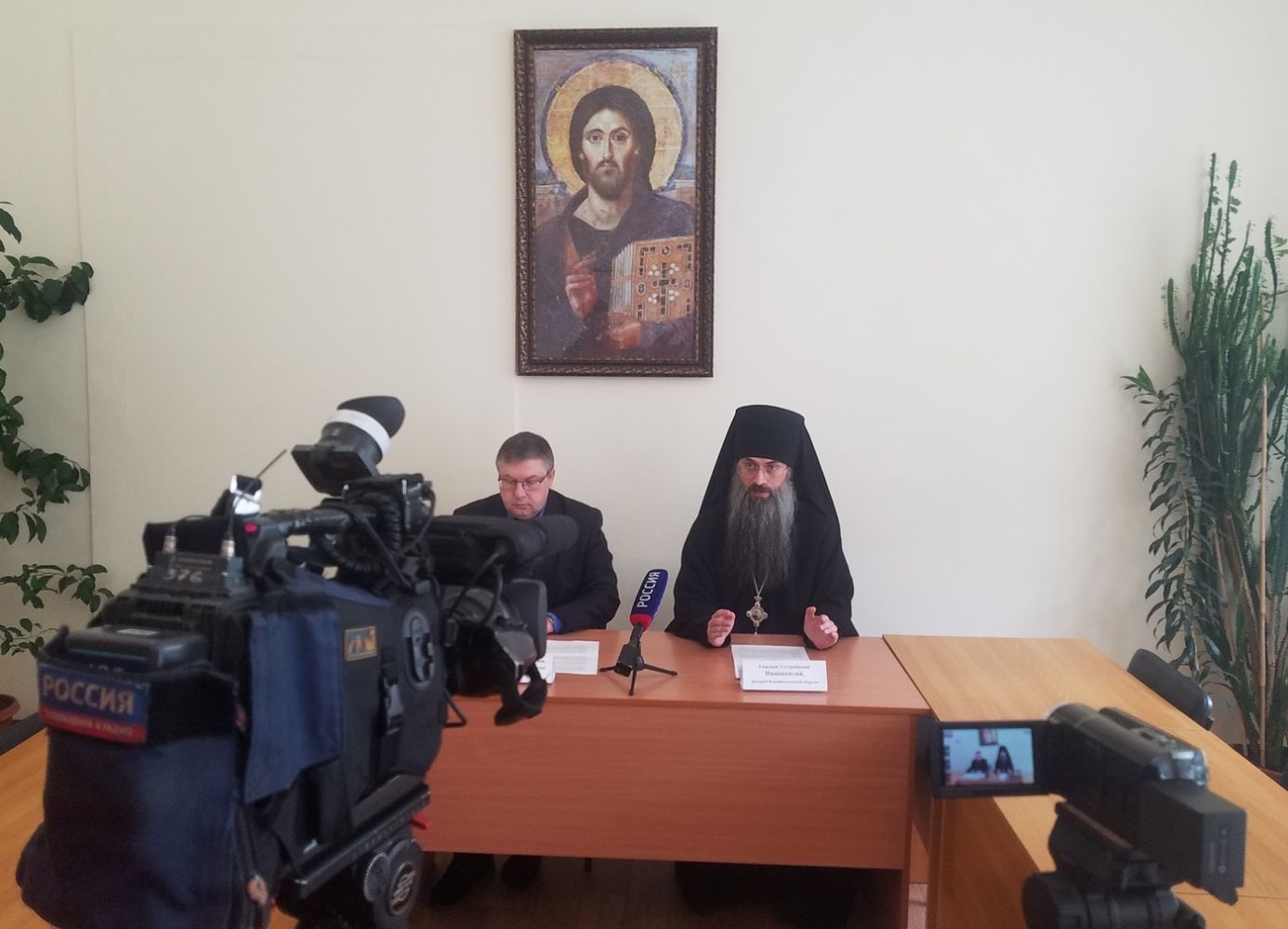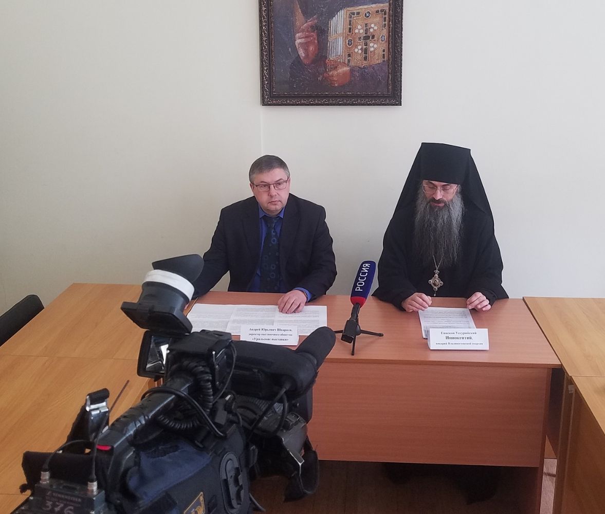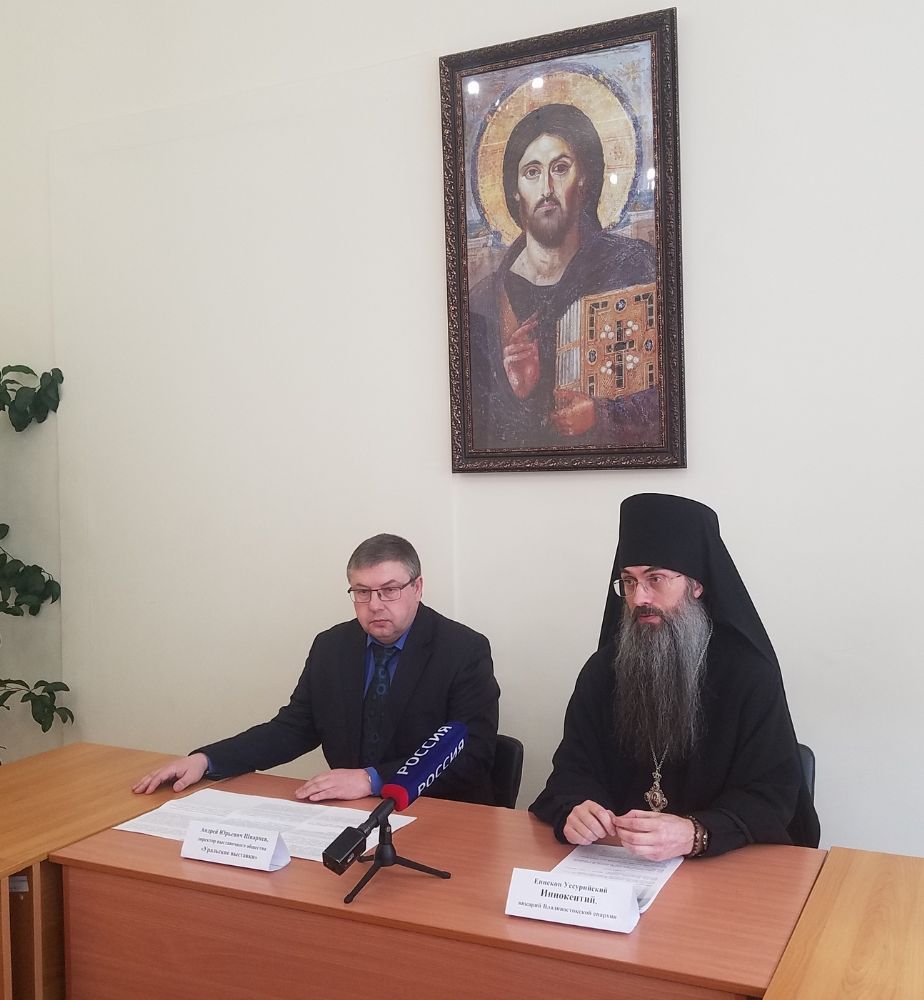 Владивосток. В Епархиальном управлении 1 апреля прошел брифинг, посвященный открытию во Владивостоке православной выставки "От покаяния к воскресению России». Его провели: епископ Уссурийский Иннокентий, викарий Владивостокской епархии; и Андрей Юрьевич Шварнёв, директор выставочного общества «Уральские выставки».
