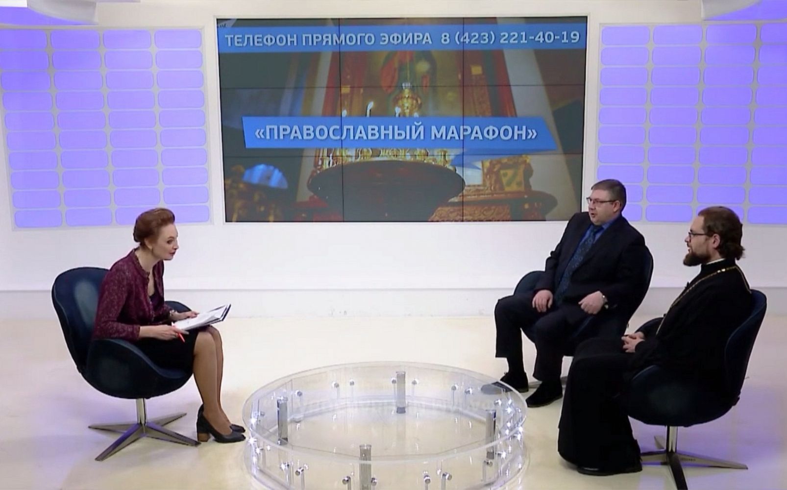 Также о православной выставке-ярмарке вчера в прямом эфире рассказало Общественное телевидение Приморья. Гостями прямого эфира стали благочинный I округа Владивостокской епархии протоиерей Димитрий Федорин и директор выставочного общества «Уральские выставки» А.Ю. Шварнёв. Рейтинговый вечерний получасовой эфир телепрограммы «В центре внимания» провела телеведущая Ольга Сомкина