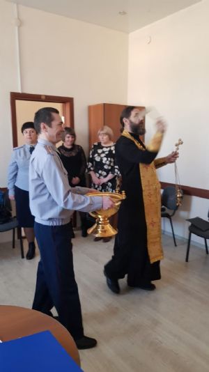 Владивосток. По просьбе сотрудников ФСИН иерей Владимир Яковченко, клирик храма преподобного Серафима Саровского города Уссурийска, совершил освящение главной бухгалтерии ГУФСИН города Владивостока. Во время молебна и освящения помещений присутствовали начальник ГУФСИН по Приморскому краю генерал-майор внутренней службы Вадим Викторович Версткин; главный бухгалтер бухгалтерии подполковник внутренней службы Ольга Викторовна Пинчук, начальник отдела делопроизводства полковник Н.А. Бабенко и другие сотрудники.