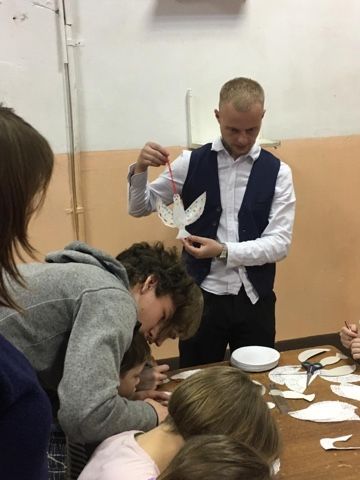 "Стараемся ребят чему-нибудь новому научить, к примеру, в прошедшую субботу мы делали бумажных голубей - символе праздника Благовещения Персвятой Богородицы. В следующий субботу будем учить детей расписывать деревянные яйца-писанки», - рассказывают ребята из молодежки. - Присоединяйтесь к нашим скромным и очень важным делам". Координатор этого проекта Анна Гребенщикова, связаться с ней можно по телефону: +7(914)715-18-39.
