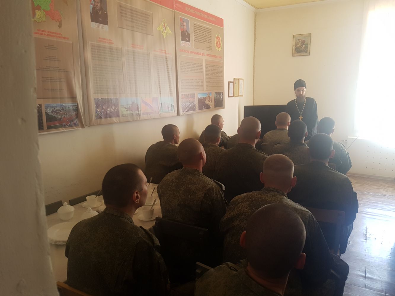 Владивосток. Настоятель Свято-Серафимовского мужского монастыря игумен Климент (Кривоносов) провёл беседу с военнослужащими срочной службы в одной из войсковых частей острова Русский. Просьба о проведении мероприятия поступила от командования части. Священник Климент рассказал воинам об истории церковных праздников Благовещения, Входа Господня в Иерусалим и Пасхи. Повествования о Евангельских событиях вызвали живой интерес у слушателей. Беседа продолжалась более часа и вышла далеко за пределы первоначальной темы. Были затронуты события Ветхозаветной истории, происхождение народов, современных мировых религий и культур.