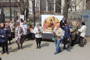 Были вознесены молитвы ко Господу о мире на Украине и завершении строительства Спасо-Преображенского кафедрального собора города Владивостока.