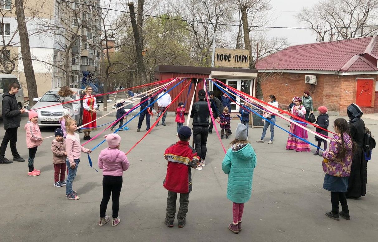 Владивосток. Молодежный отдел епархии подготовил праздничную программу к Вербному воскресенью. «Мы решили подробно рассказать о празднике Входа Господня и его духовном значении, — рассказал руководитель отдела иерей Димитрий Винокуров. — Тем более что в храмах на Вербное воскресенье традиционно людно, многие приходят освятить вербу, так что это была прекрасная возможность для миссионерской акции».