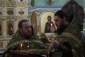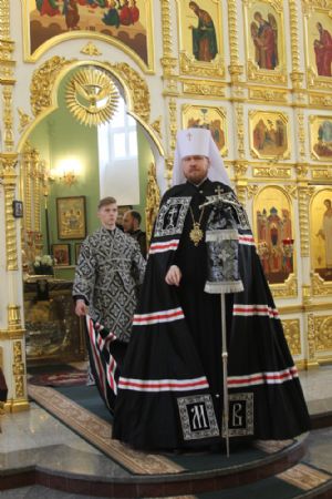 Его Высокопреосвященству сослужили: ключарь собора протоиерей Александр Талько, протоиерей Константин Чунчук, протоиерей Игорь Шевчук, игумен Тихон (Иршенко), иерей Максим Точуков, иерей Владимир Брагин.