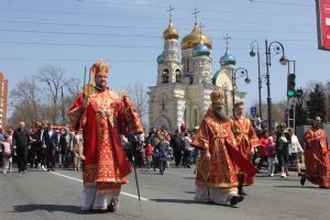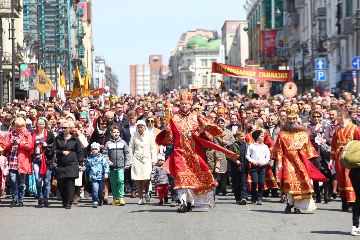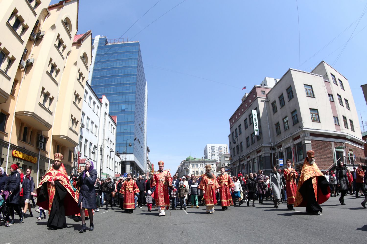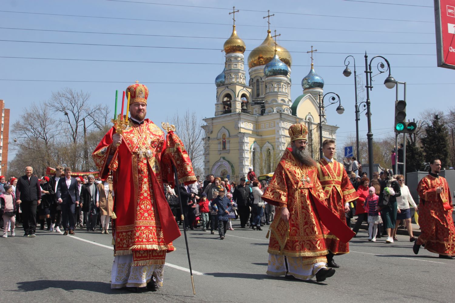 Владивосток. В праздник Светлого Христова Воскресения, 28 апреля 2019 года, митрополит Владивостокский и Приморский Владимир и епископ Уссурийский Иннокентий, викарий Владивостокской епархии, возглавили Пасхальный крестный ход от Покровского собора по центральной магистрали приморской столицы — Океанскому проспекту — к строящемуся Спасо-Преображенскому собору. В праздничном шествии приняли участие губернатор Приморского края Олег Кожемяко, председатель Законодательного собрания Приморского края Александр Ролик, другие официальные лица.