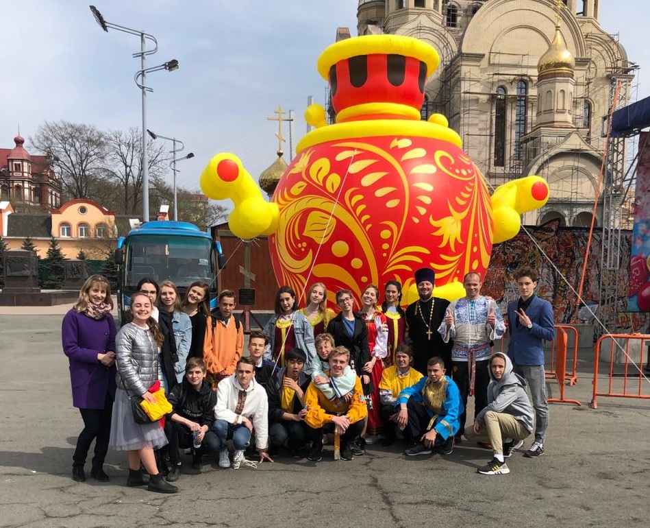 Владивосток. 28 апреля 2019 года, в праздник Светлого Христова Воскресения, активисты Молодёжного отдела епархии приняли участие в традиционном крестном ходе, который по благословению митрополита Владимира прошел от Покровского Кафедрального Собора до Центральной площади города Владивостока. Впервые члены «молодёжки» шли все вместе, сплочённым коллективом в ярких жёлтых футболках молодёжного отдела Приморской митрополии. Вот что об этом говорит одна из участниц, Попова Дарья: