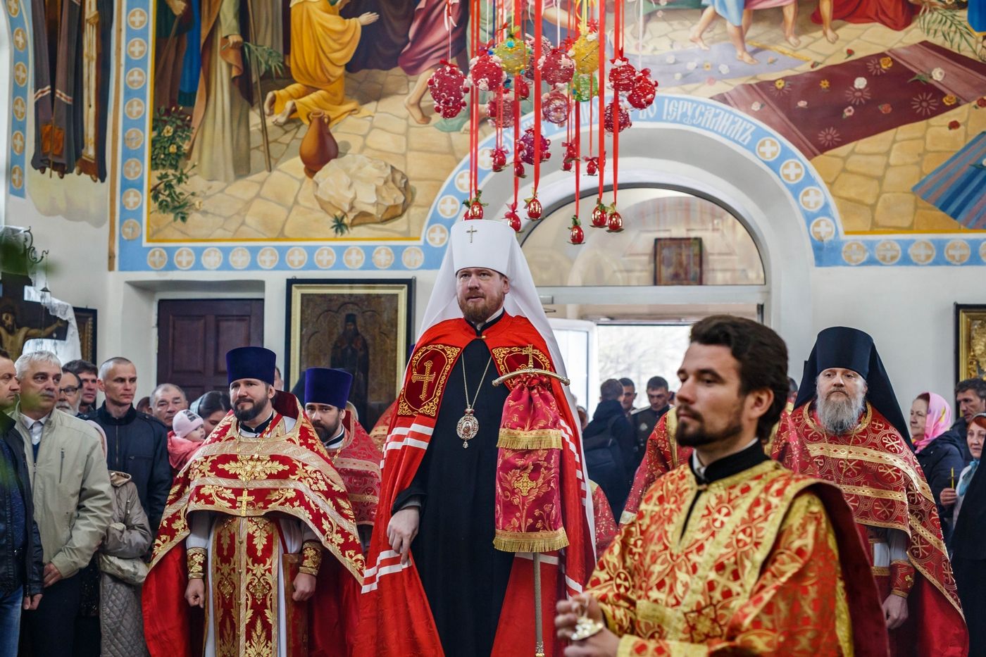 По окончании литургии владыка Владимир возглавил Пасхальный крестный ход вокруг Покровского храма и обратился к верующим с архипастырским словом.