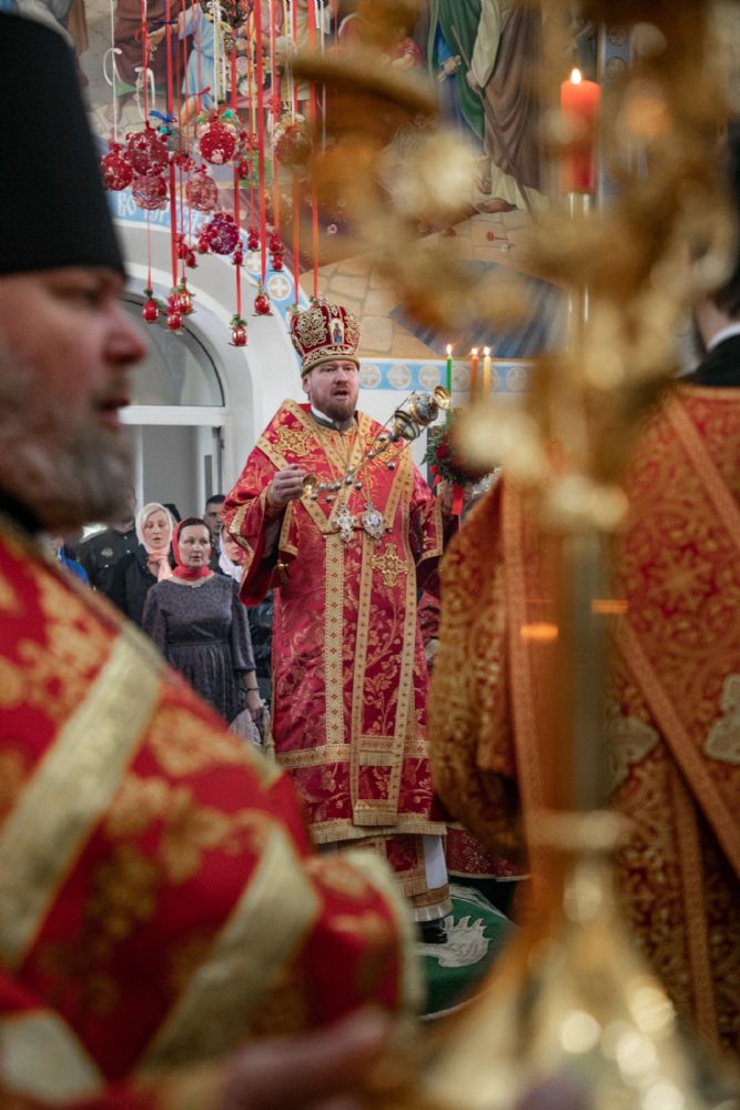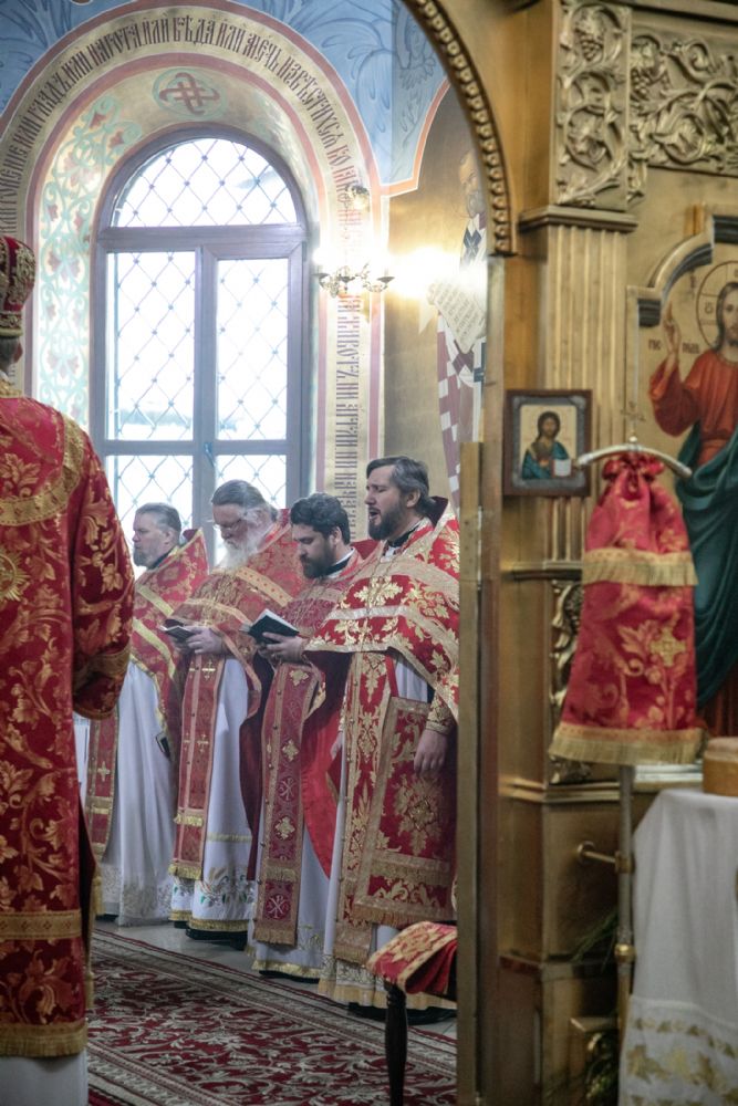 Его Высокопреосвященству сослужили благочинный II округа Владивостокской епархии протоиерей Сергий Якутов, благочинный IV округа протоиерей Андрей Машанов, благочинный I округа протоиерей Дмитрий Федорин, клир Покровского, Никольского и Серафимовского храмов города Уссурийска.