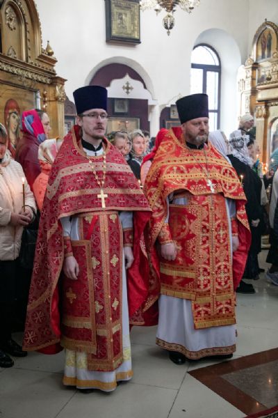 Богослужебные песнопения исполнили два хора Покровского прихода под управлением регентов Екатерины Трихлеб и Александра Уймина.
