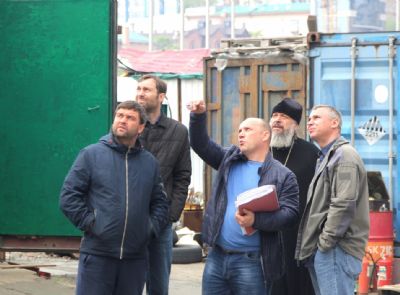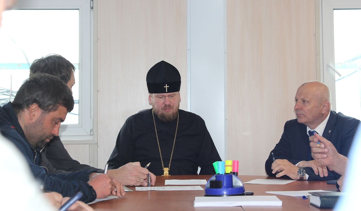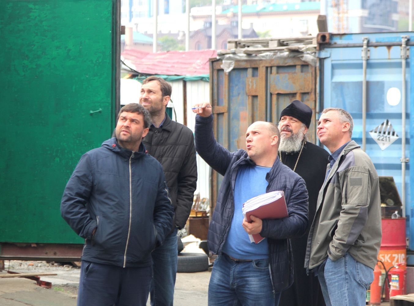 Владивосток. 14 мая 2019 года митрополит Владивостокский и Приморский Владимир провел очередное совещание на строительной площадке Спасо-Преображенского кафедрального собора.