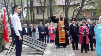 Священник обратился к собравшимся с пастырским словом, совершил у мемориала молебен и окропил плиты с именами павших героев, богослужение сопровождал колокольный звон. «Всего на памятных плитах выгравировано 247 имен, отрадно, что как раз столько школьников пришли почтить память своих земляков, и именно столько цветов поднесли они к месту памяти павших защитников Отечества, — отметил настоятель. — Также важно, что в поселке помнят своих односельчан и молятся об их упокоении».