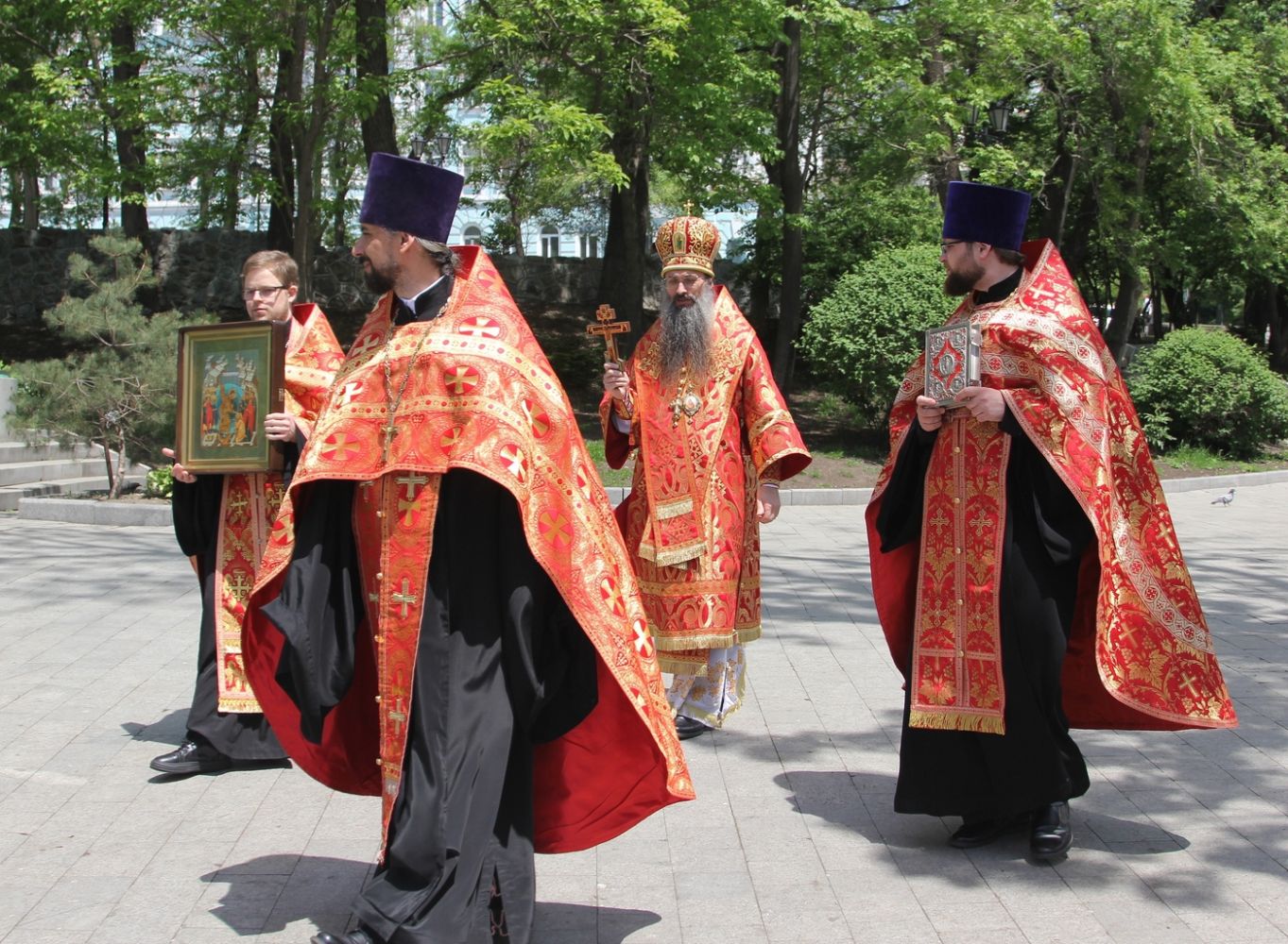 Владивосток. Епископ Уссурийский Иннокентий, викарий Владивостокской епархии, возглавил 25 мая по благословению митрополита Владивостокского и Приморского Владимира служение молебна у Триумфальной арки Цесаревича Николая. Его Преосвященству сослужили: благочинный I округа Владивостокской епархии протоиерей Димитрий Федорин; настоятель Андреевского храма на Корабельной набережной протоиерей Олег Дикмаров, клирик храма иерей Виктор Архипов. За богослужением пел хор Успенского храма Владивостока.