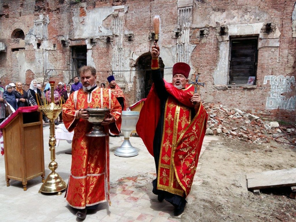 Позже состоялся водосвятный молебен в разрушенном Никольском храме. «Этот храм был построен в селе более 100 лет назад, освящён в честь святителя Николая ратного, почитаемого на Руси святого, заступника и покровителя путешественников и воинов. После революции храм перестроили в светское учреждение, а в 1993 году в нём случился пожар, в результате строение лишилось кровли», — напомнила историю храма помощник настоятеля Вознесенского храма Ирина Карайбеда.