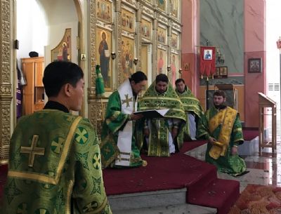 Пхеньян (КНДР). 16 июня 2019 года, в день Святой Троицы (Пятидесятницы), в Троицком храме в столице Корейской Народно-Демократической Республики отметили престольный праздник. По благословению митрополита Владивостокского и Приморского Владимира клирик Владивостокской епархии иерей Георгий Пынтя принял участие в торжествах.