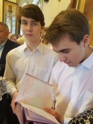Владивосток. Лучшим из вчерашних школьников в храме в честь святых Кирилла и Мефодия, Учителей Словенских, почетный настоятель храма гимназии митрополит Вениамин (на покое) вручил два диплома с отличием и одну золотую медаль.