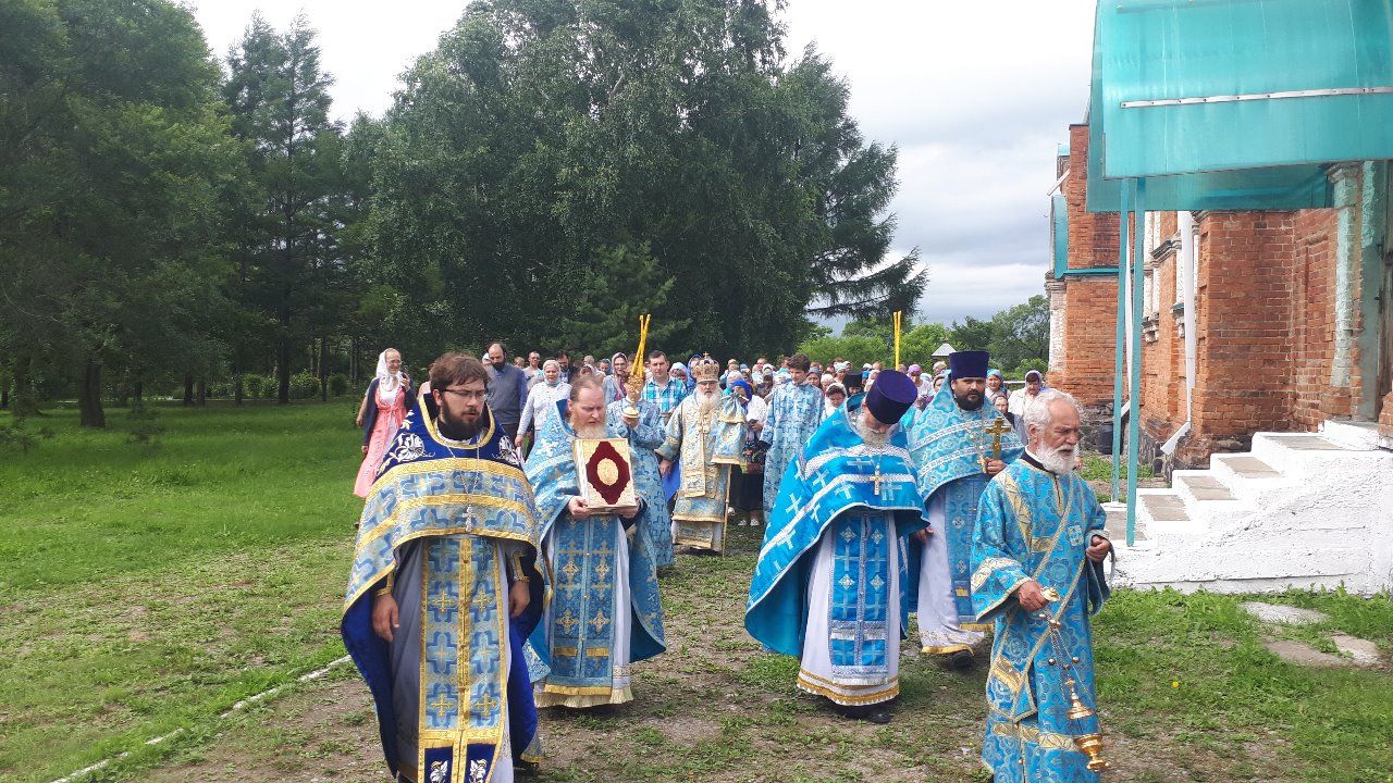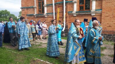 По окончании праздничного богослужения состоялся крестный ход вокруг Казанского храма.