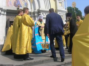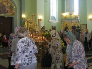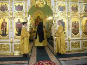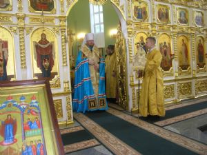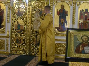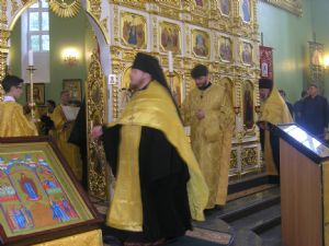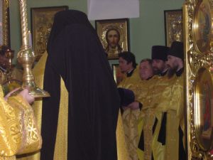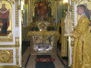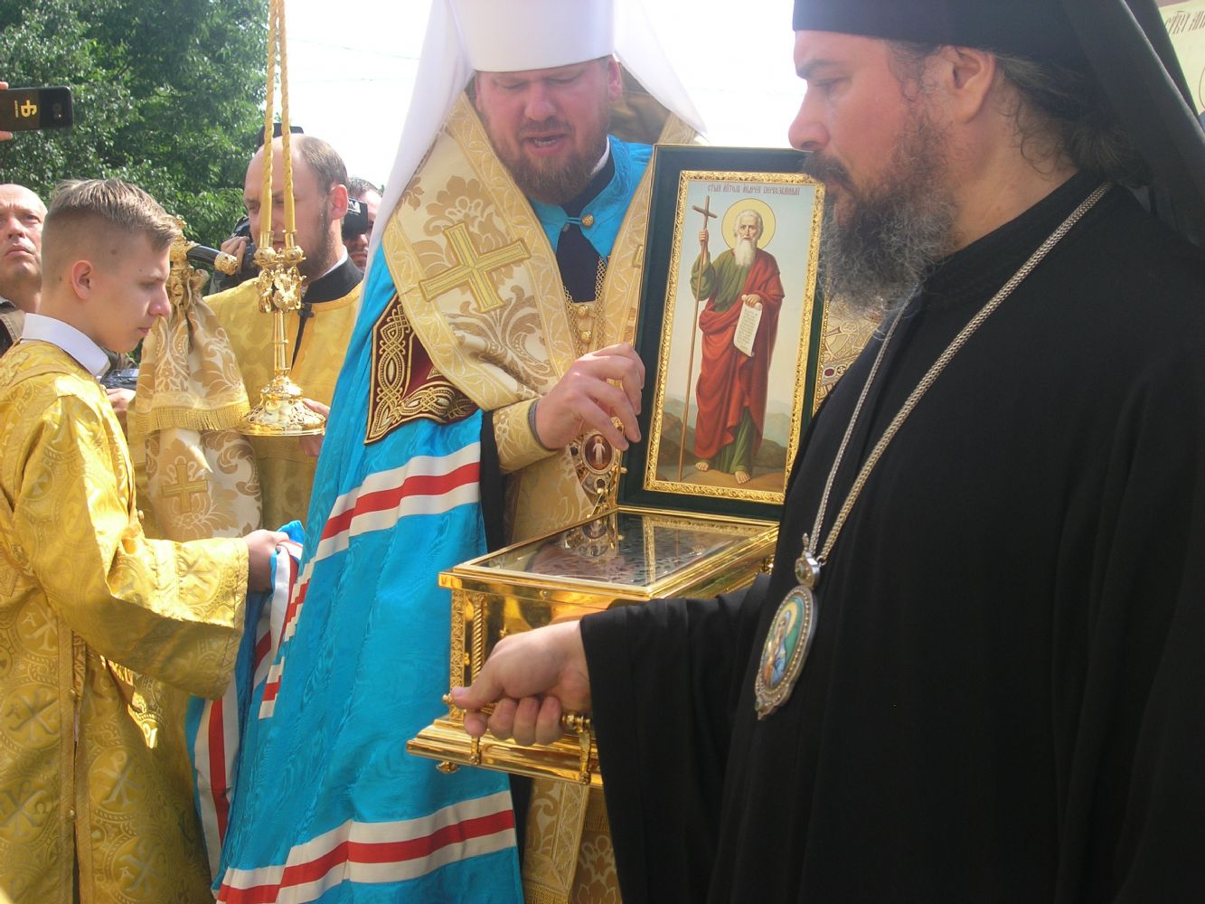 После встречи святыни были совершены молебен святому апостолу Андрею Первозванному и всенощное бдение.