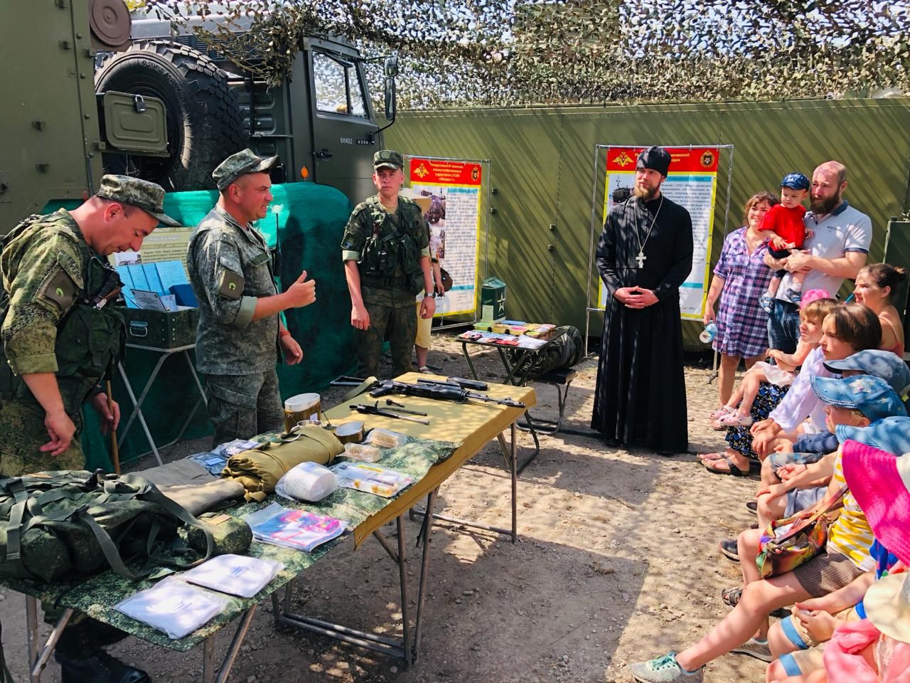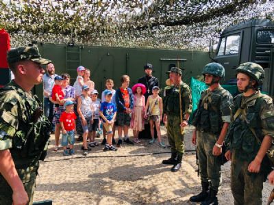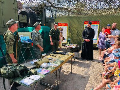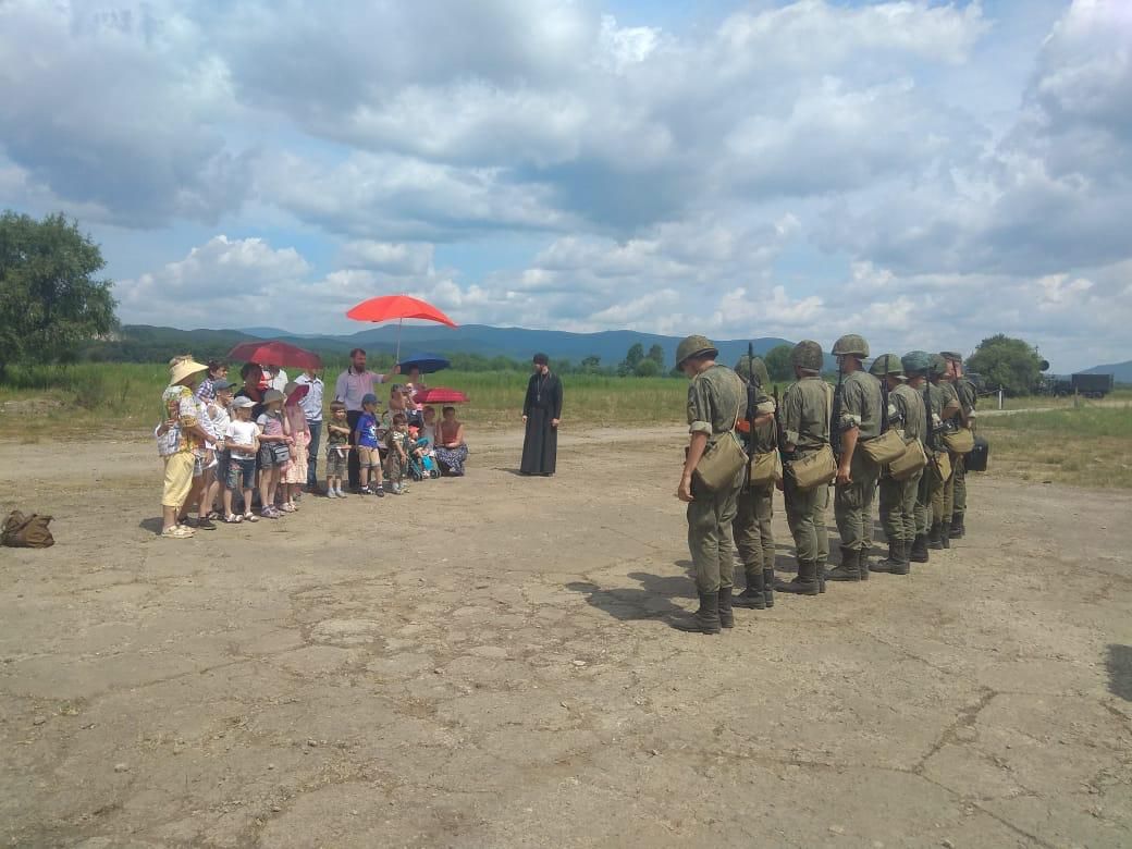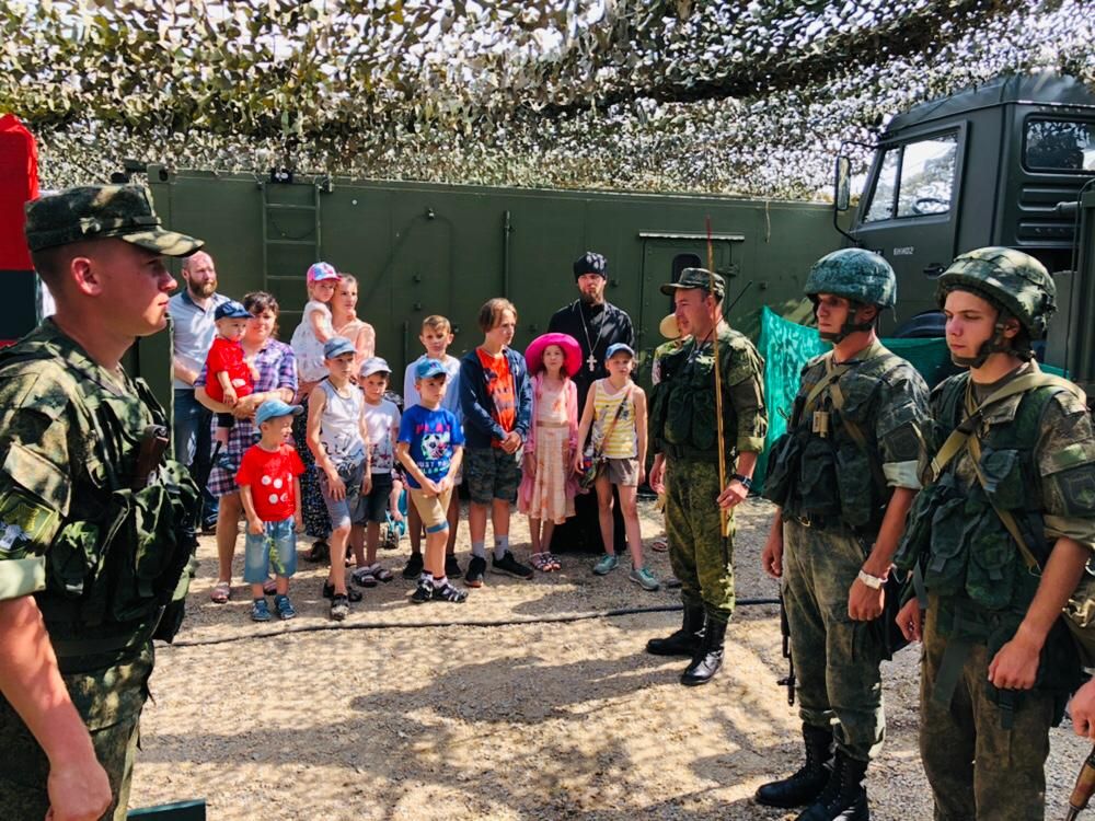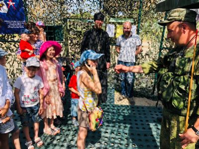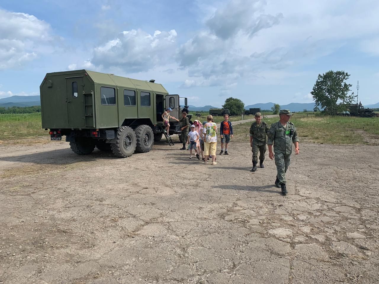 В этот день воспитанники воскресных школ приходов Покровского, Никольского (Чуркин), Покровского (Угольная), Богоявления (г. Артем) смогли познакомиться с военной техникой, с воинским бытом и с большим аппетитом пообедать на армейской кухне. Экскурсия понравилась всем без исключения. И, несомненно, она послужила наглядным примером воспитания у будущего поколения лучших духовно-нравственных качеств.