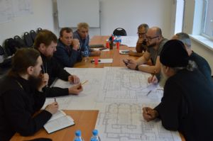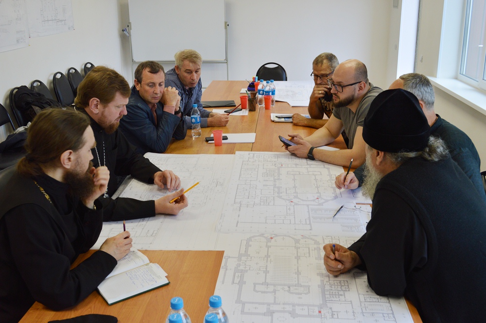 В ходе совещания был рассмотрен план стилобатной части собора, обсуждалась планировка помещений и их соответствие строительным нормам.