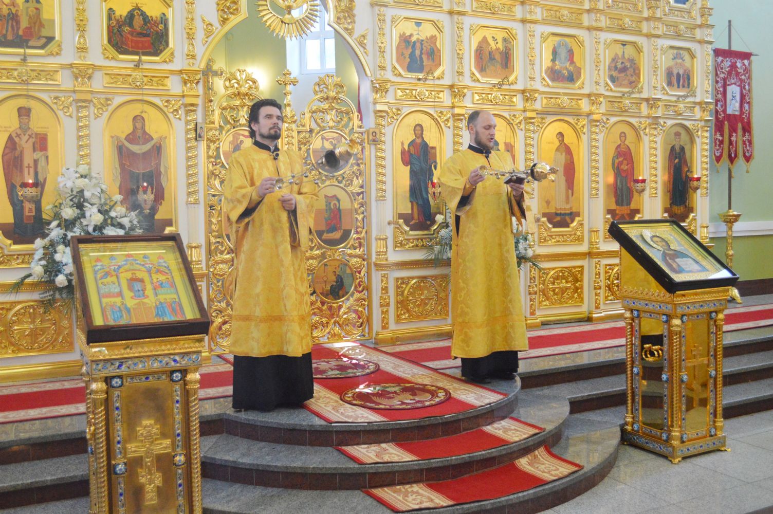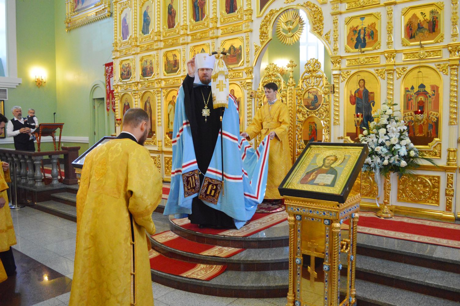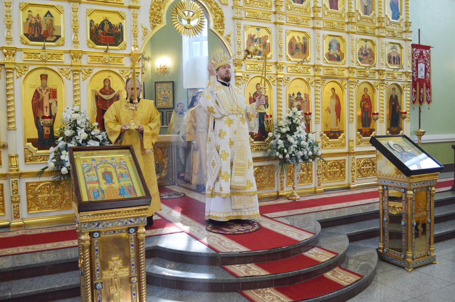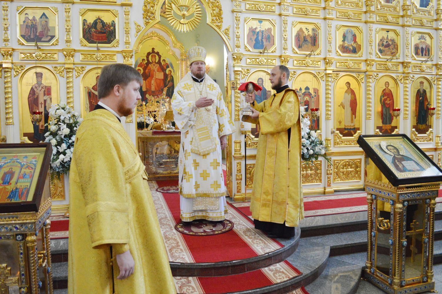 Его Высокопреосвященству сослужили ключарь собора иеромонах Иоанн (Костин), игумен Тихон (Иршенко), протоиерей Игорь Шевчук, иерей Глеб Журавлев.
