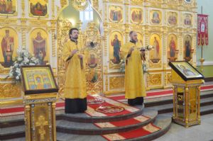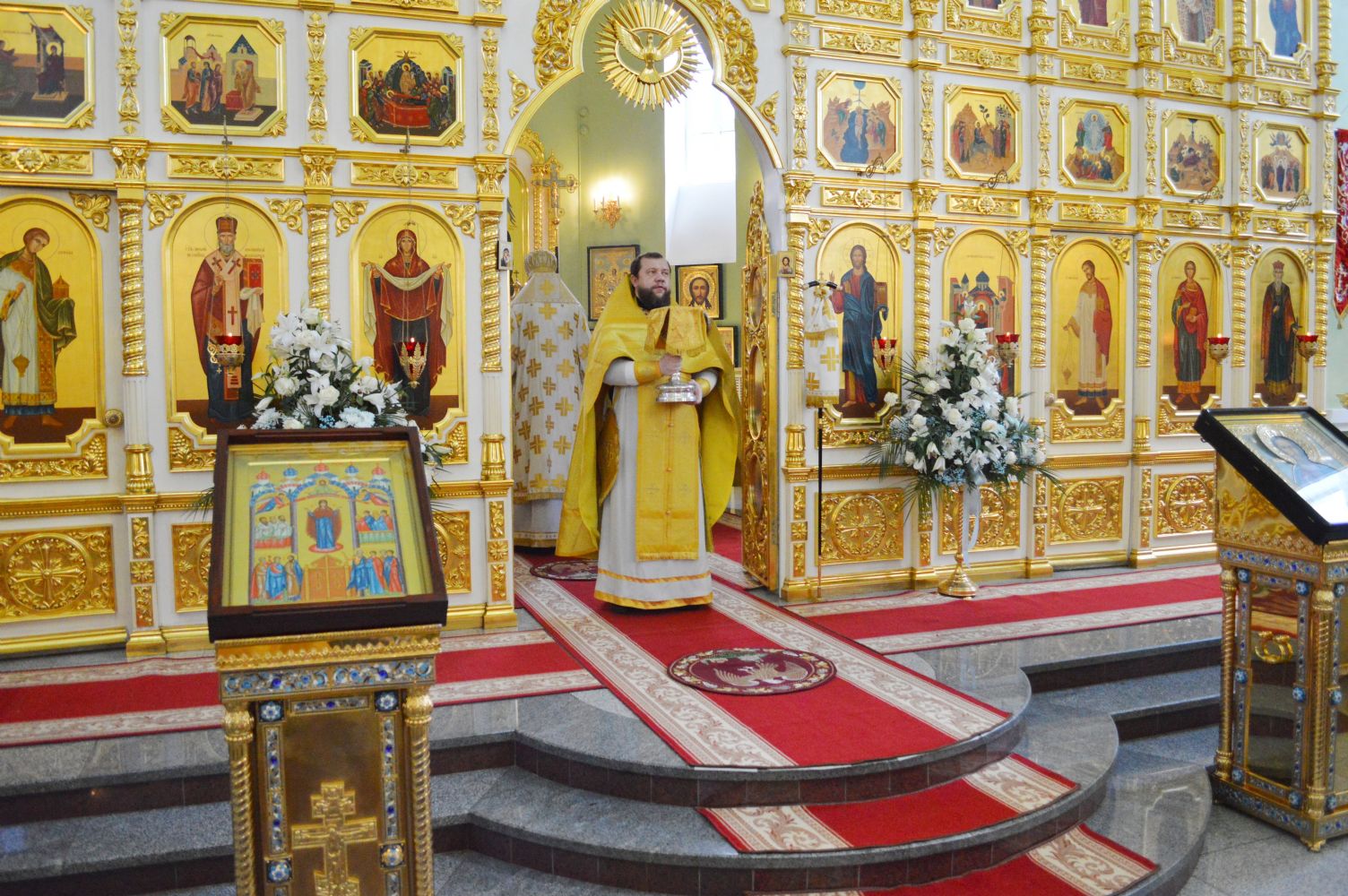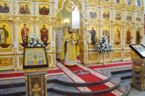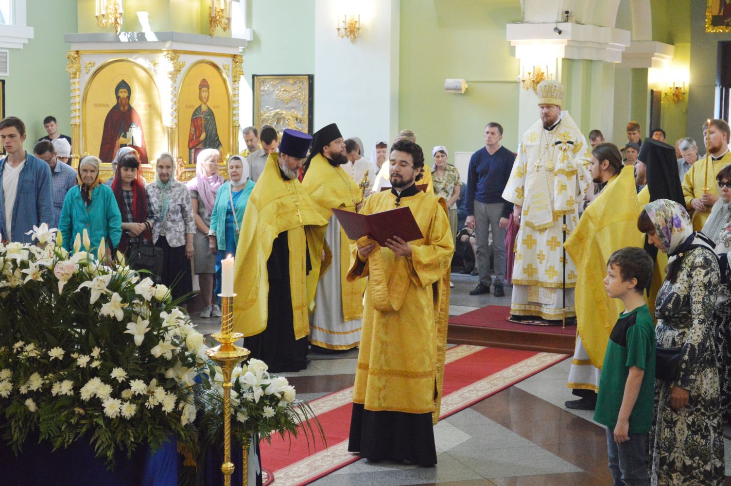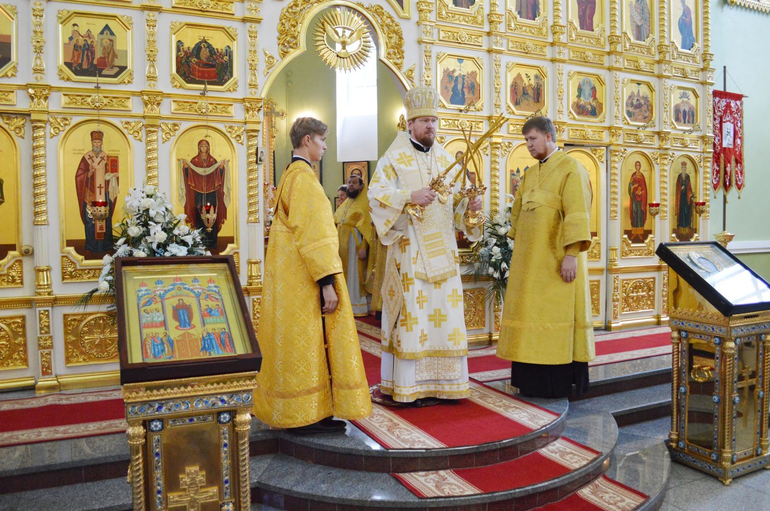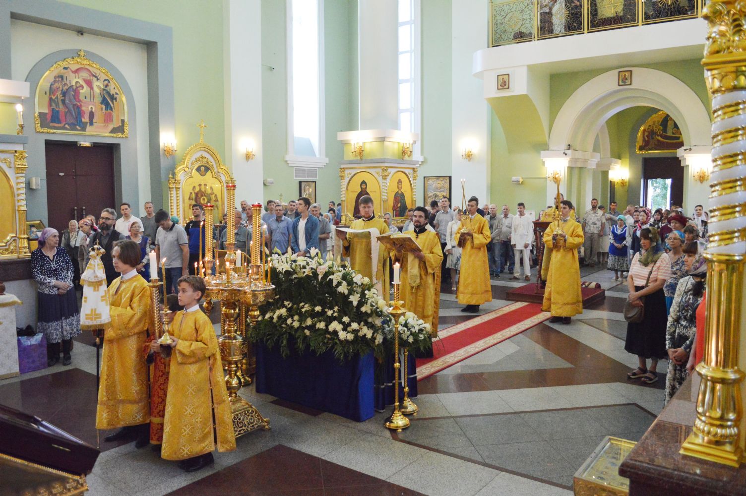 Его Высокопреосвященству сослужили ключарь собора иеромонах Иоанн (Костин), игумен Тихон (Иршенко), протоиерей Игорь Шевчук, иерей Глеб Журавлев.